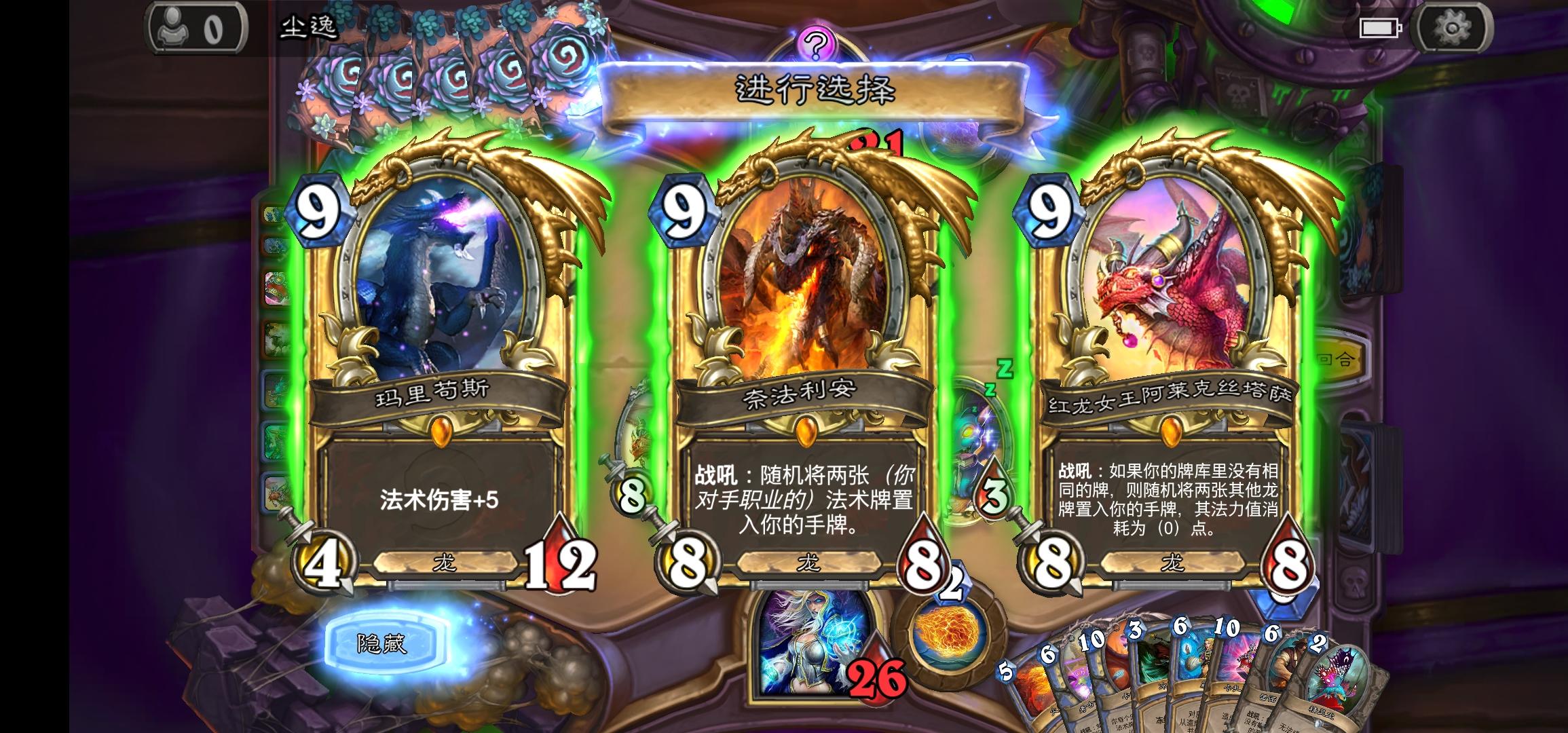 看看这个可怜的法师这局天胡,托瓦格尔抽jk,jk拉龙蹄,龙跟班给红龙,再加暗影步,总计11张0费牌