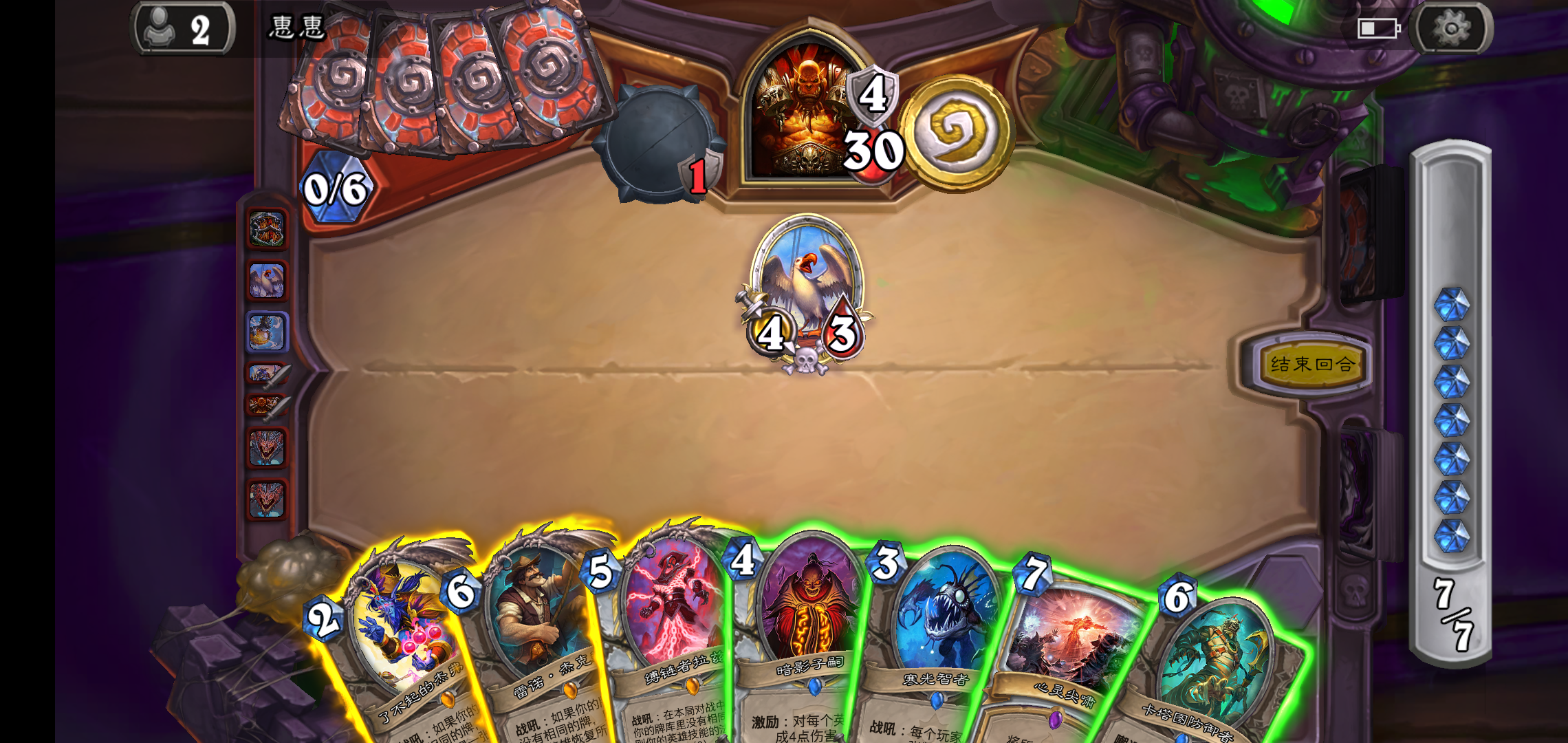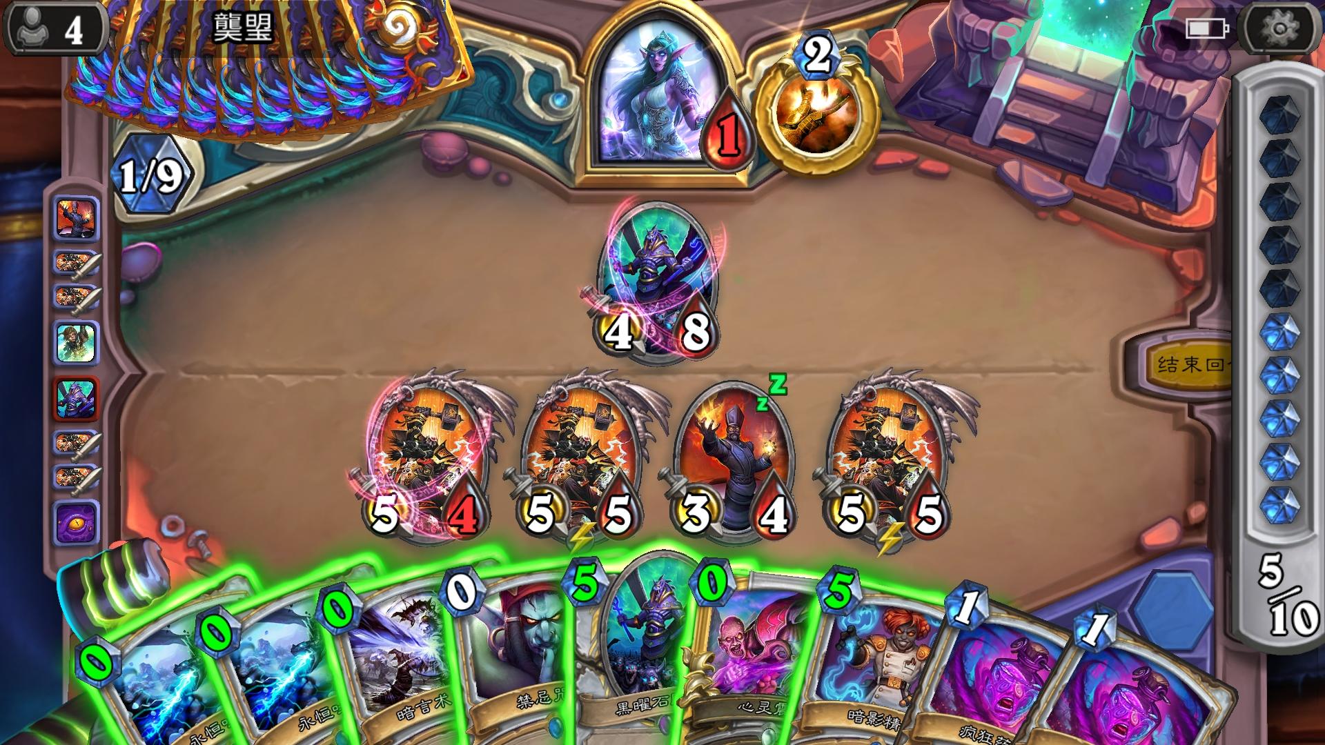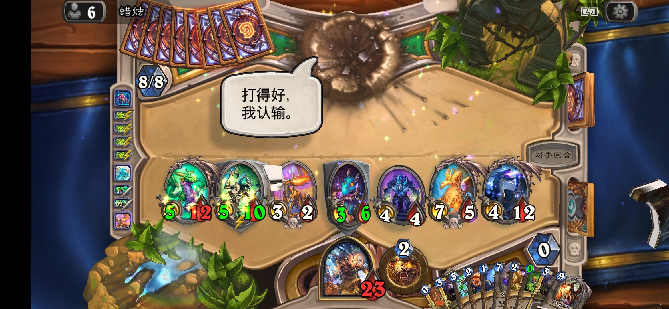 今天遇到神奇一幕。对面脏牧,场面铺满,我再抽不到雷诺解场就无了。然后 对面用偷我的索兰莉安,释放骨灰盒,刚好牌库快干了。抽卡疲劳,满血活生生给疲劳死了。这就是脏牧的报应吧