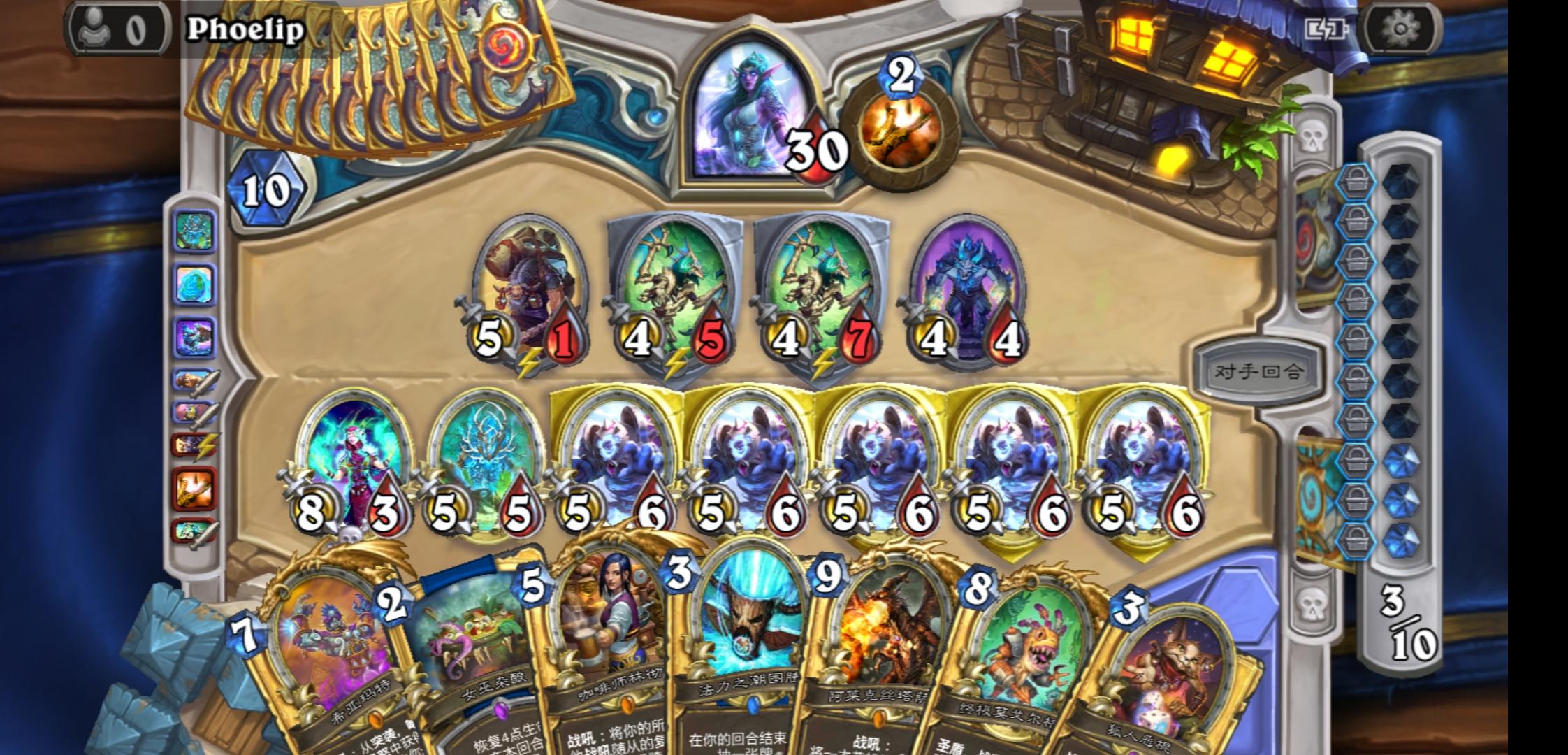 😂上黄金了,不得不说牧师偷我牌真恶心(还好带个沉默不然我没了);这德鲁伊放随从把自己堵死了😂