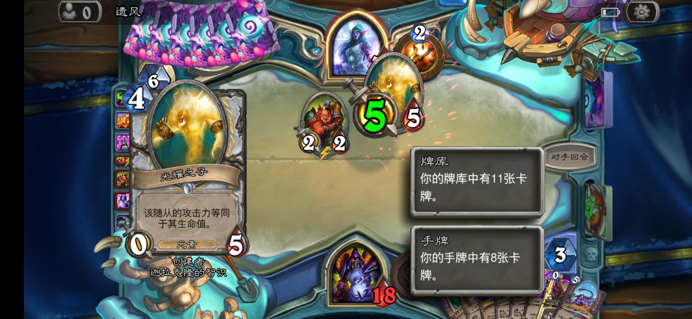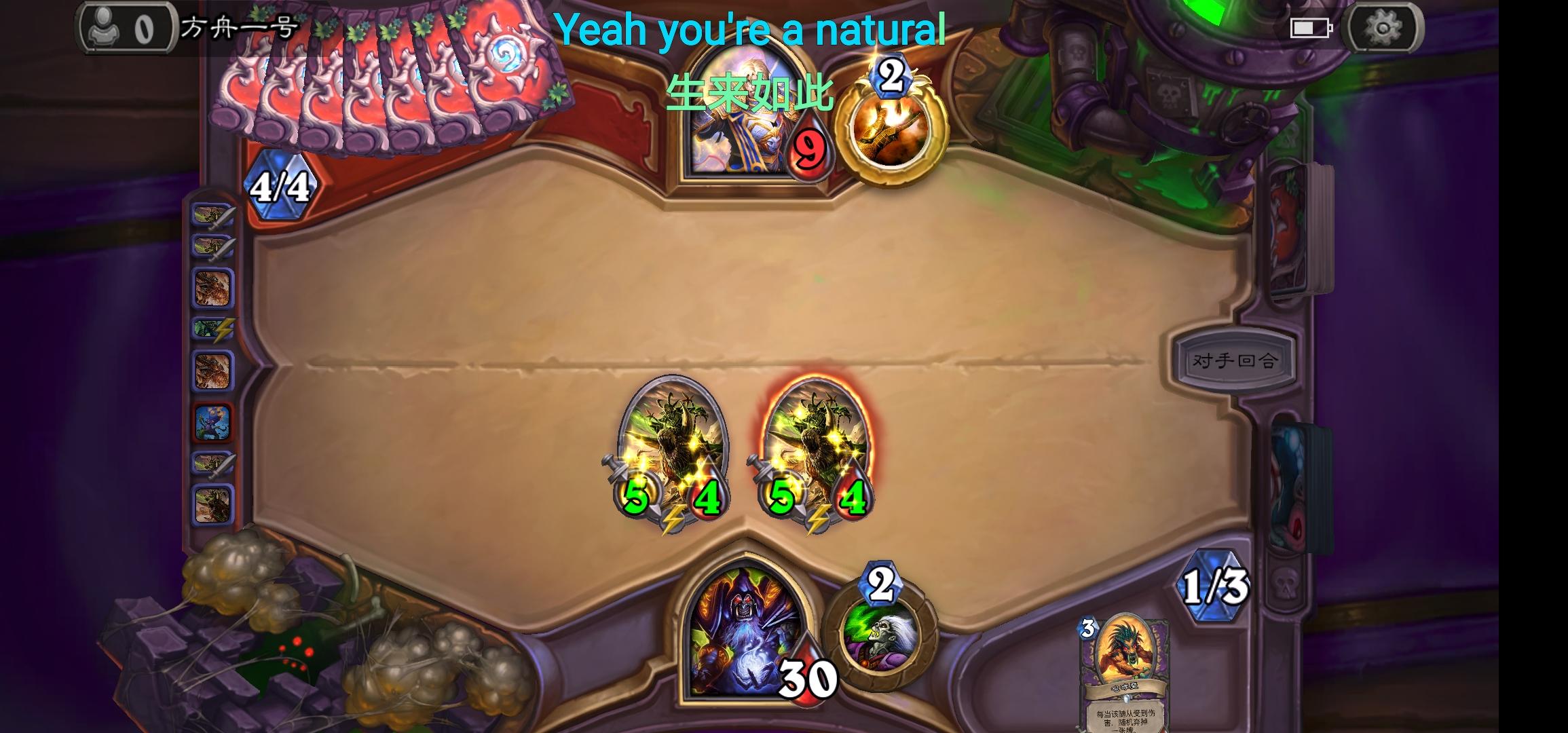 对面下回合就把我打死了,我这还算胡的呢,人家直接一费打我满血可还行……果然吉安娜是亲女儿,雷傲天就是天