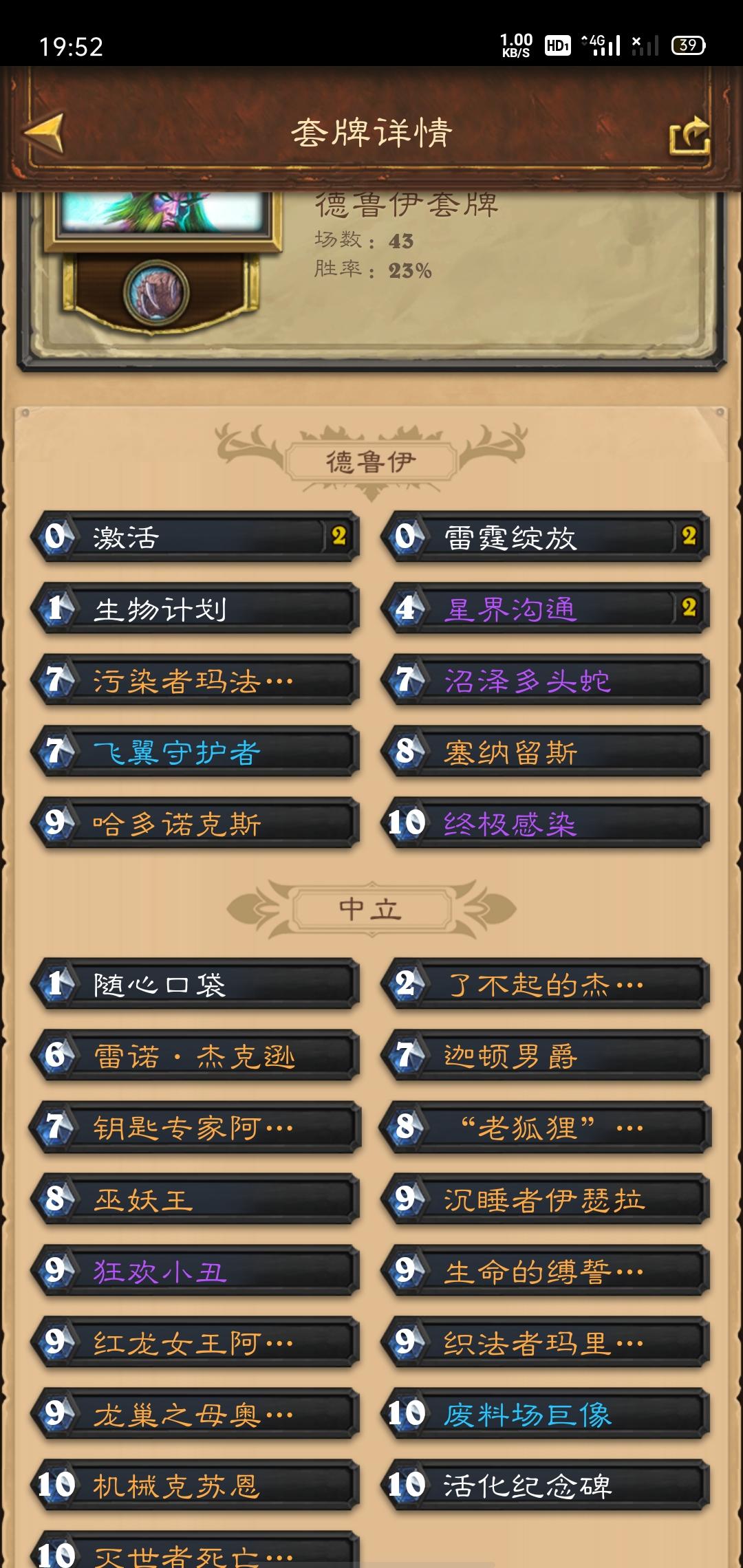 这个赛季我用奇迹贼(本人年迈老贼)打到铂金,发现不太好打,于是又用愚人法打到钻石(多数都是前期开愚人翻盘)然后又用保镖德打上低保,发现猎人太多了,鄙人想加入奈何t7猎太贵(笑话,t7居然上万尘),于是又合了套元素打脸萨干上传说