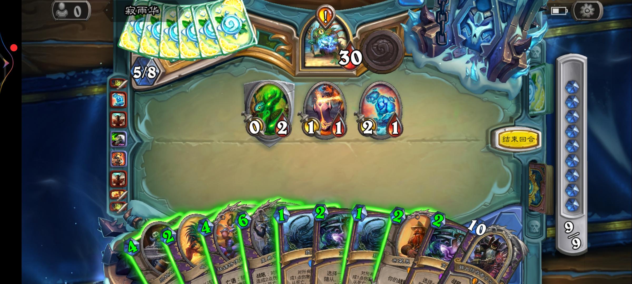从1费到5费,没有一点多余的操作,牌都是刚刚好,真的行云流水一气呵成