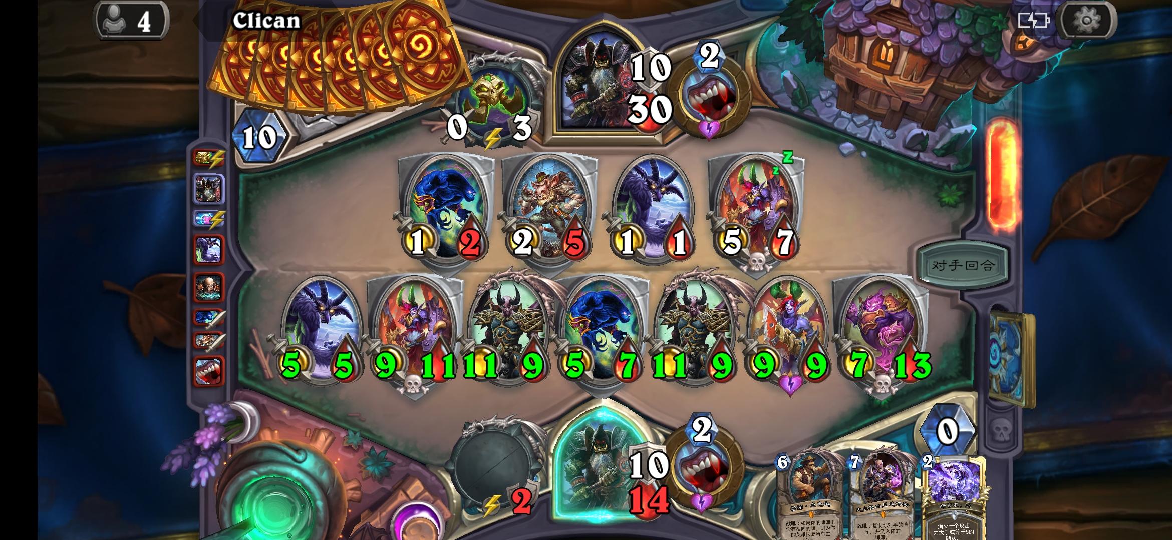 三费场面,下回合+4/+4,+4/+4刚好斩杀