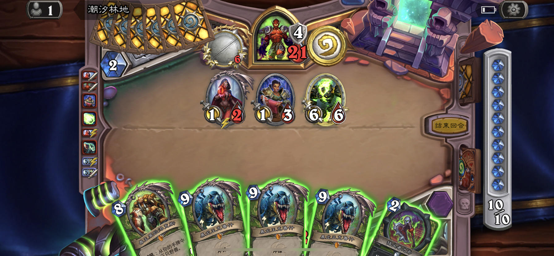 职业:牧师套牌:0费治疗光环,1费北郡牧师,2费火炎法师起手建议都拿一张,1回合下北郡2回合下火炎法师,有银币就打银币再打一个北郡,然后一直治疗光环让对手感受圣光的庇护一般能超杀15多点以下为实战图,怎么样,喜欢吗,喜欢就分享给其他朋友看看吧