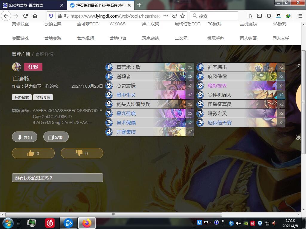 再换一张能触发两次亡语的传说随从,这套能打死人吗