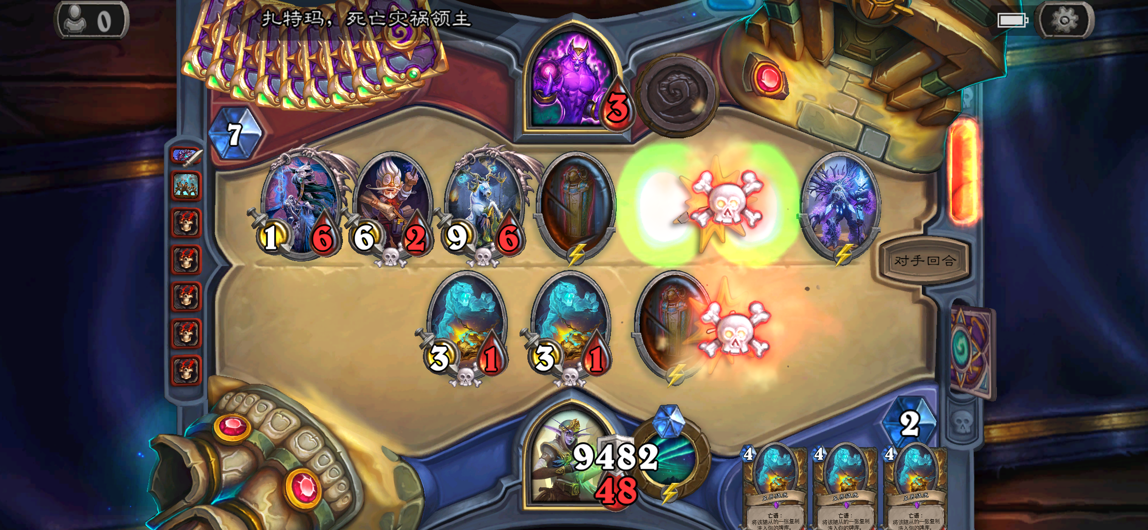 我截两张卡的图时自己还是满血40多盾,我是后来又把灾祸的血量打了一些,没想到自己的血量也少了好多最后居然都死了(用晚了....)