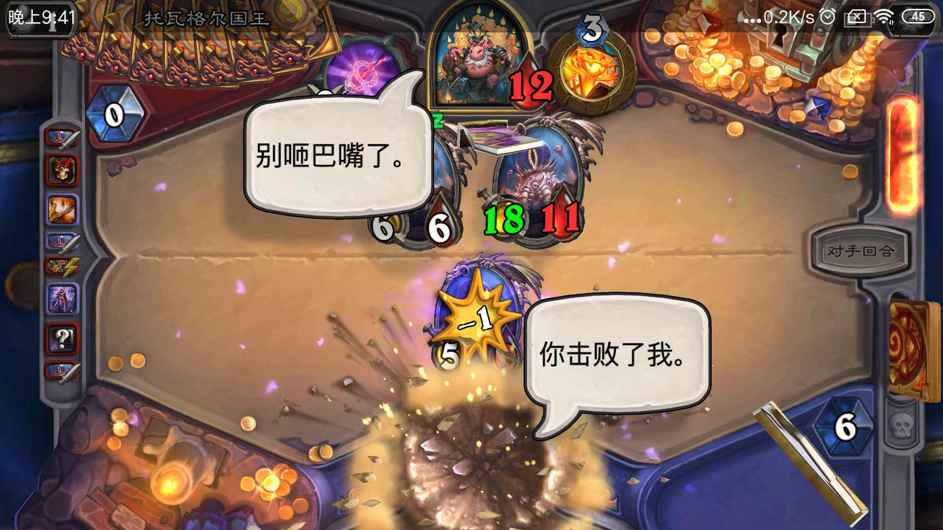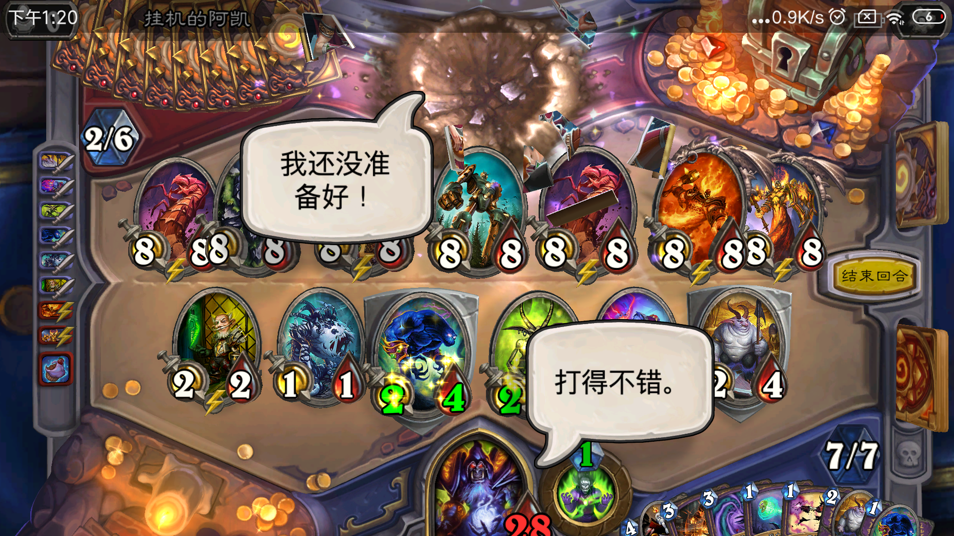 这个游戏太难了,我的妈耶,差了好几十滴血咱不说啥,可他那宠物也太变态了,冰冻就获得零点消耗的亮点伤害的法术卡,关键这小子随从全是自带冰冻效果,法术也是冻结敌方全部随从,三个晚上都没过去,一顿冰冻+寒冰箭(0耗)打的我没脾气了心累(▼皿▼#)又成盒了