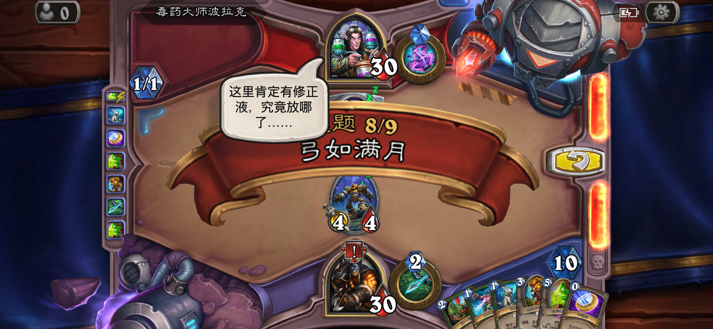 达拉然大劫案第五章节,难度简直逆天啊!心里总有一股捶死设计师的冲动(๑•̀㉨•́ฅ✧为了拿我的黄金卡包,我刷了一个上午的宝藏,一不满意直接认输然后重开,刷了几个小时终于成功了。宝藏酒馆选择如下以及最后还有这个,5费的侏儒军刀宝藏,就是为了要一个它的冲锋属性。最后结果就是3费下永恒者宝藏怪,然后直接踢脸,游戏结束切记一定要用圣骑士职业,然后用第三个技能,用第一副套牌。关乎概率问题,如果你用