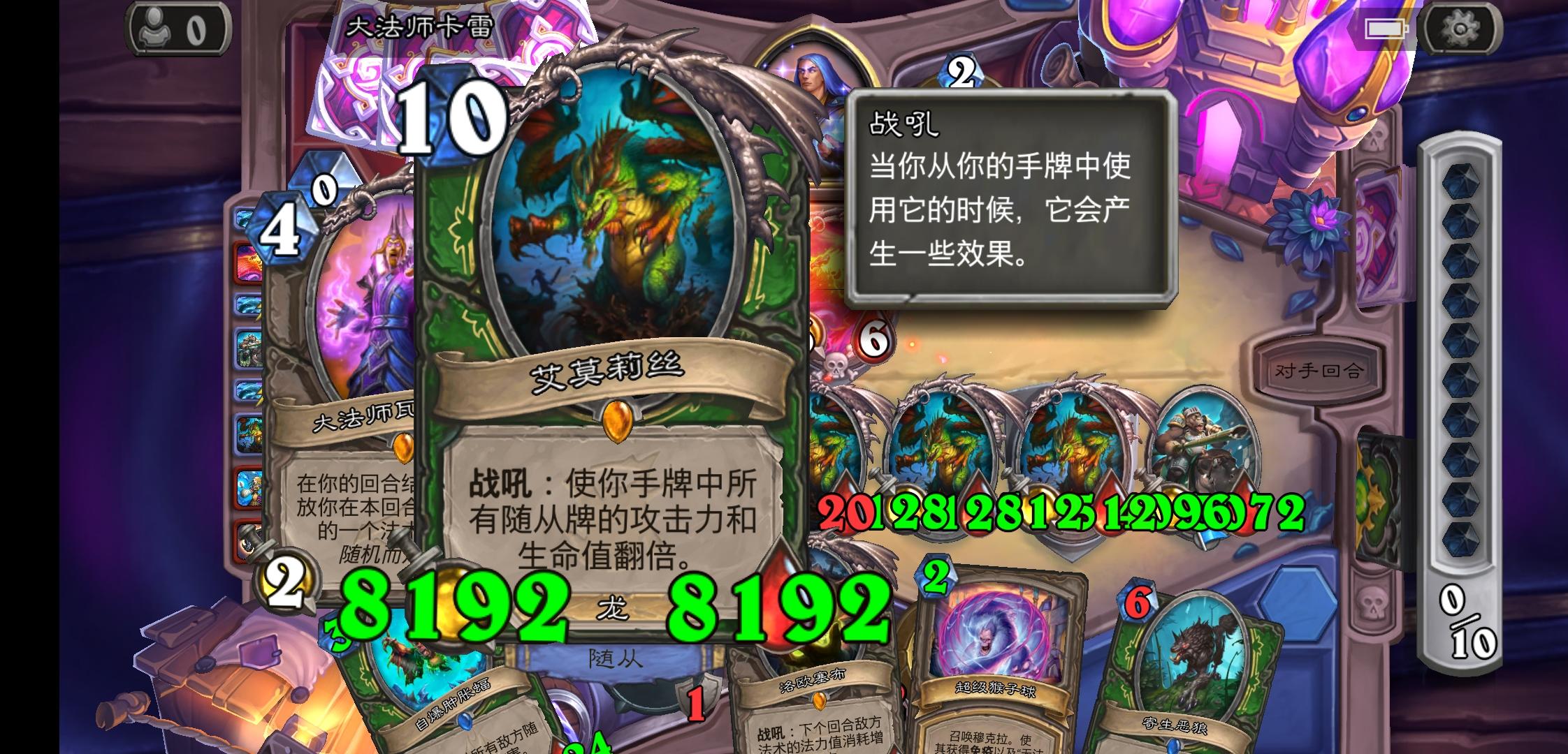 咳咳,达拉然大劫案真的快乐啊,让我享受的一把当boss的感觉,虐的对面的死去活来废话少说,直接上图这个随从疑似全炉石最高攻击力!!!你们见过没有?真的是爽啊!这个boss可以无限刷属性!可惜这把没有带能洗牌库的疲劳一下扣我20血,实在顶不住不然感觉我可以刷出无限攻击力,真的快乐!!你们玩冒险都是怎么虐boss的,哈哈啊哈哈,来交流一下啊!我吹爆达拉然我吹爆这头六费的龙!(`