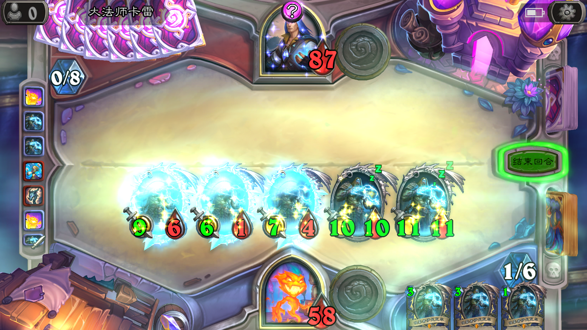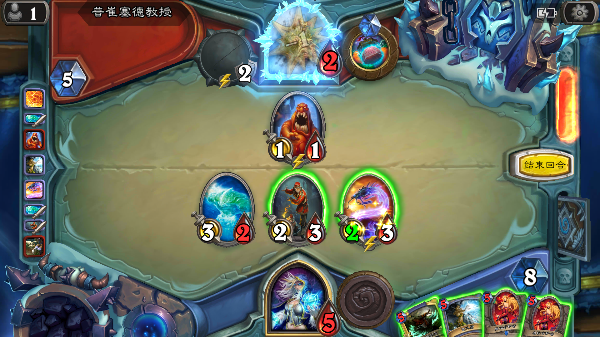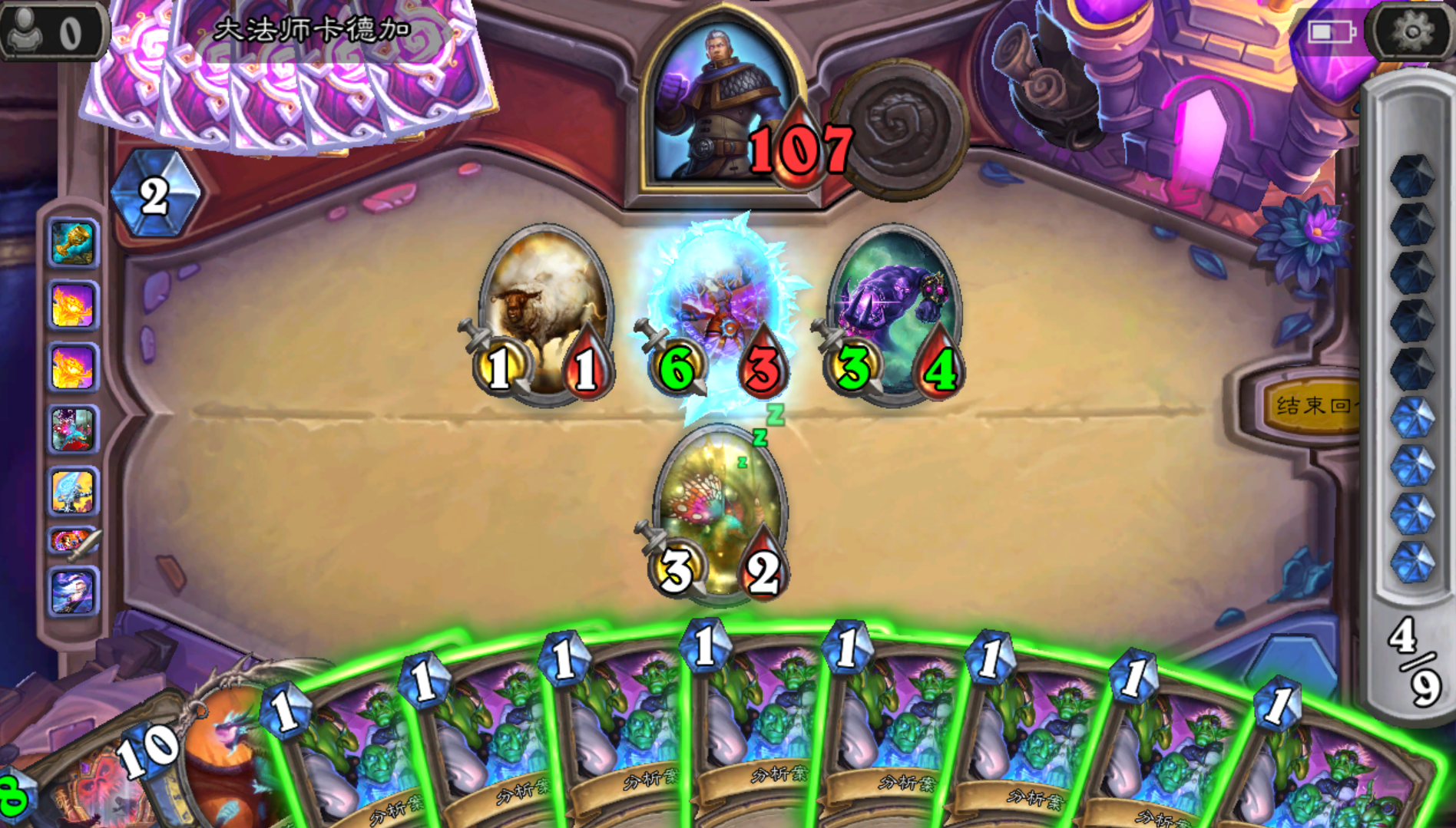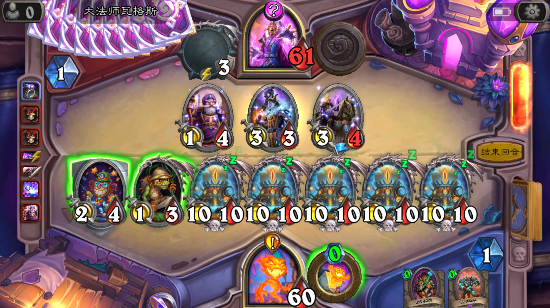 注意侏儒吸血鬼的数量用未知宝物找的4费洗牌库随从的那个宝物 玩起来非常娱乐最后一把本来能赢得 奈何boss手牌打空 4费复制 3费抽牌看来这种玩法被系统制裁了 哈哈哈
