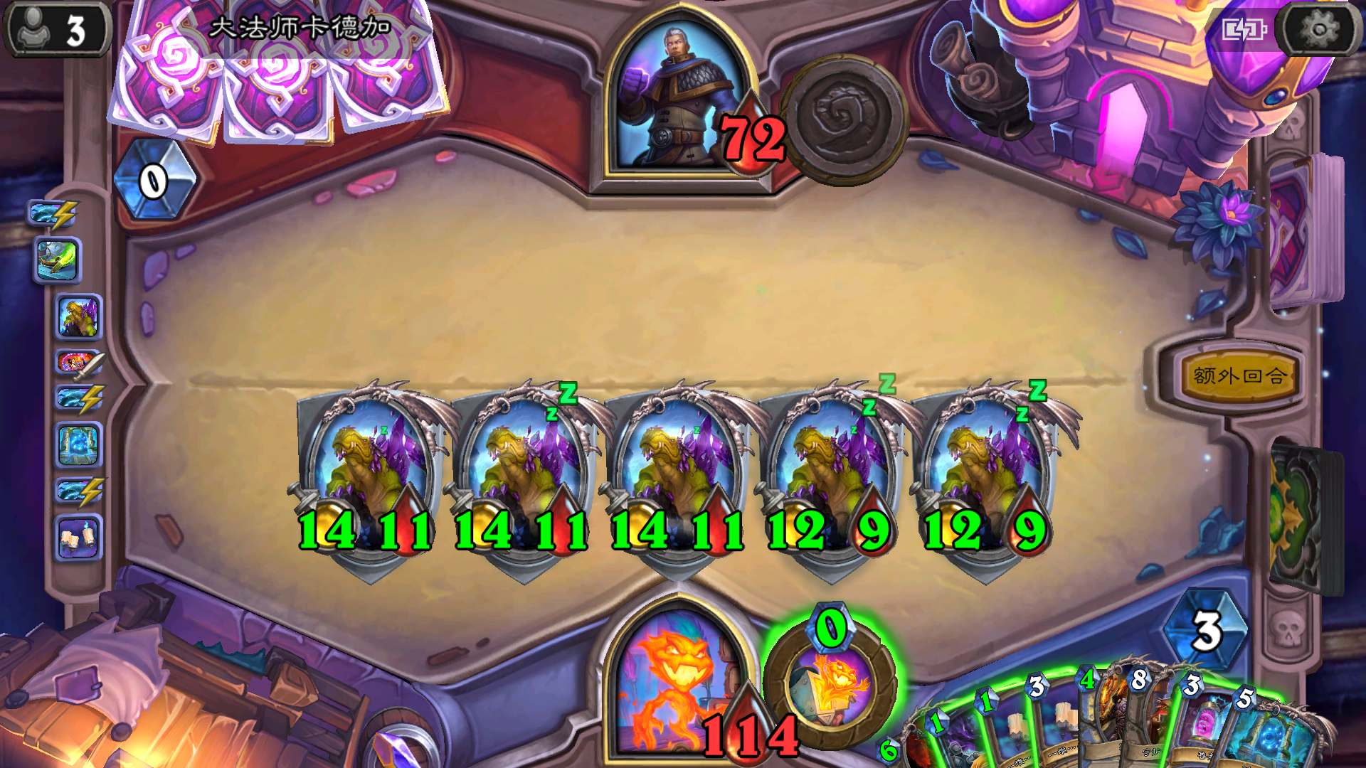 把卡德加打自闭了都,法术再次释放我手里两个法师任务奖励多了4个回合还有圣骑任务进化好召唤复制。。卡德加走好。。技能是减费那个又选了一个技能强化(手动大帝)