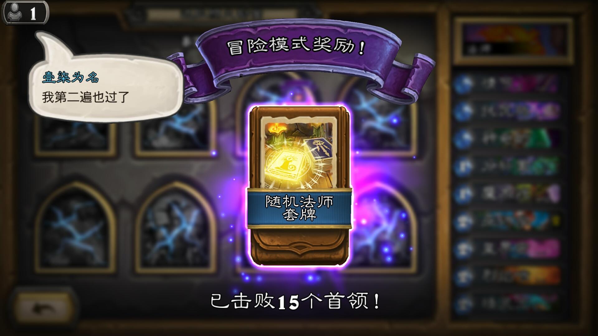 一轮过,还是可以的,就是中间他娘的失误了一波,咒术师变对面忘了要触发亡语,结果炸场还给对面留两个8费随从,还好后面又打回来了召唤法真他娘的好玩吹爆伊瑟拉最后一关全靠急救包回血……天启四骑士+幼龙,64血搞死真滴快洛
