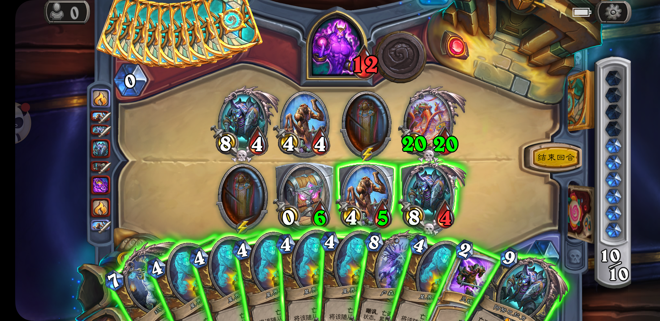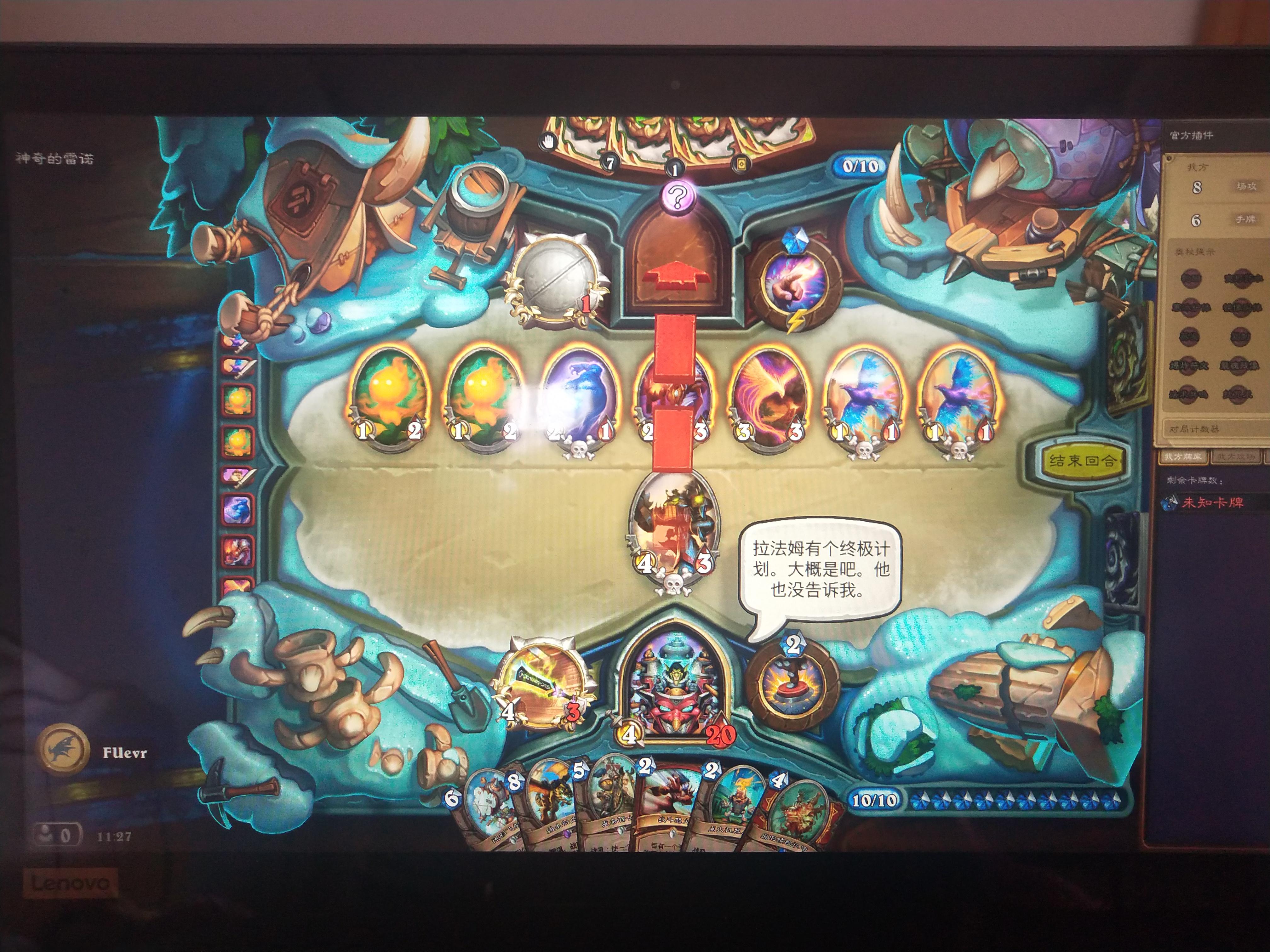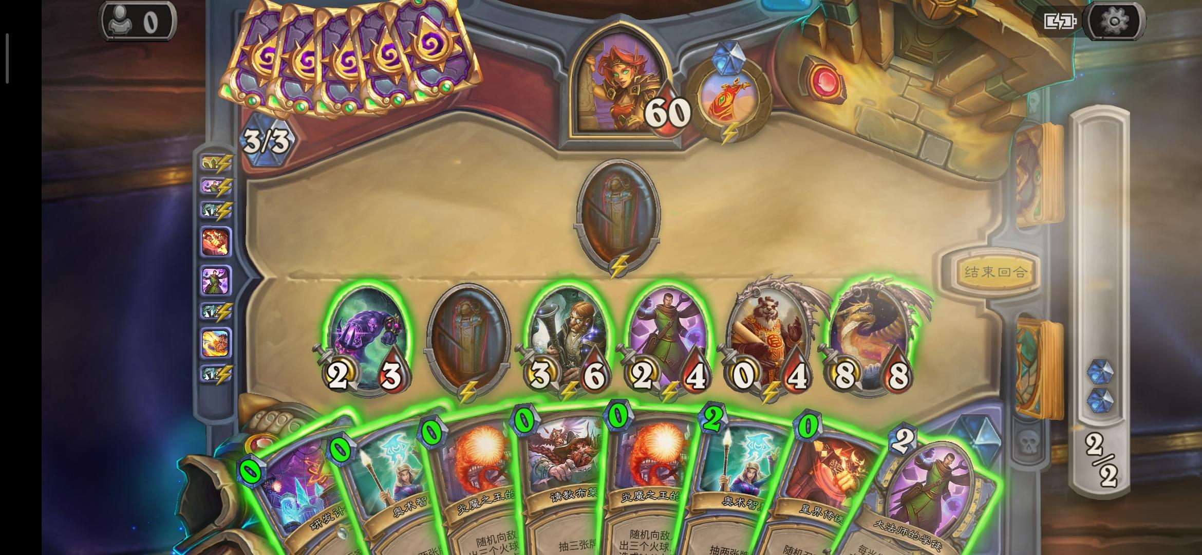 最近买了个冒险,玩的小火人法师,到最后一关时我就不该放10费绿色大嘴,n个法术把手机卡死了