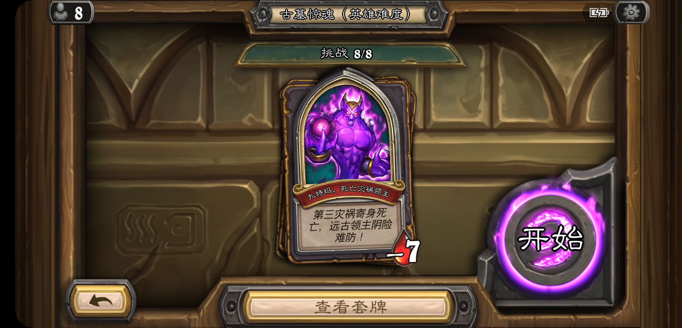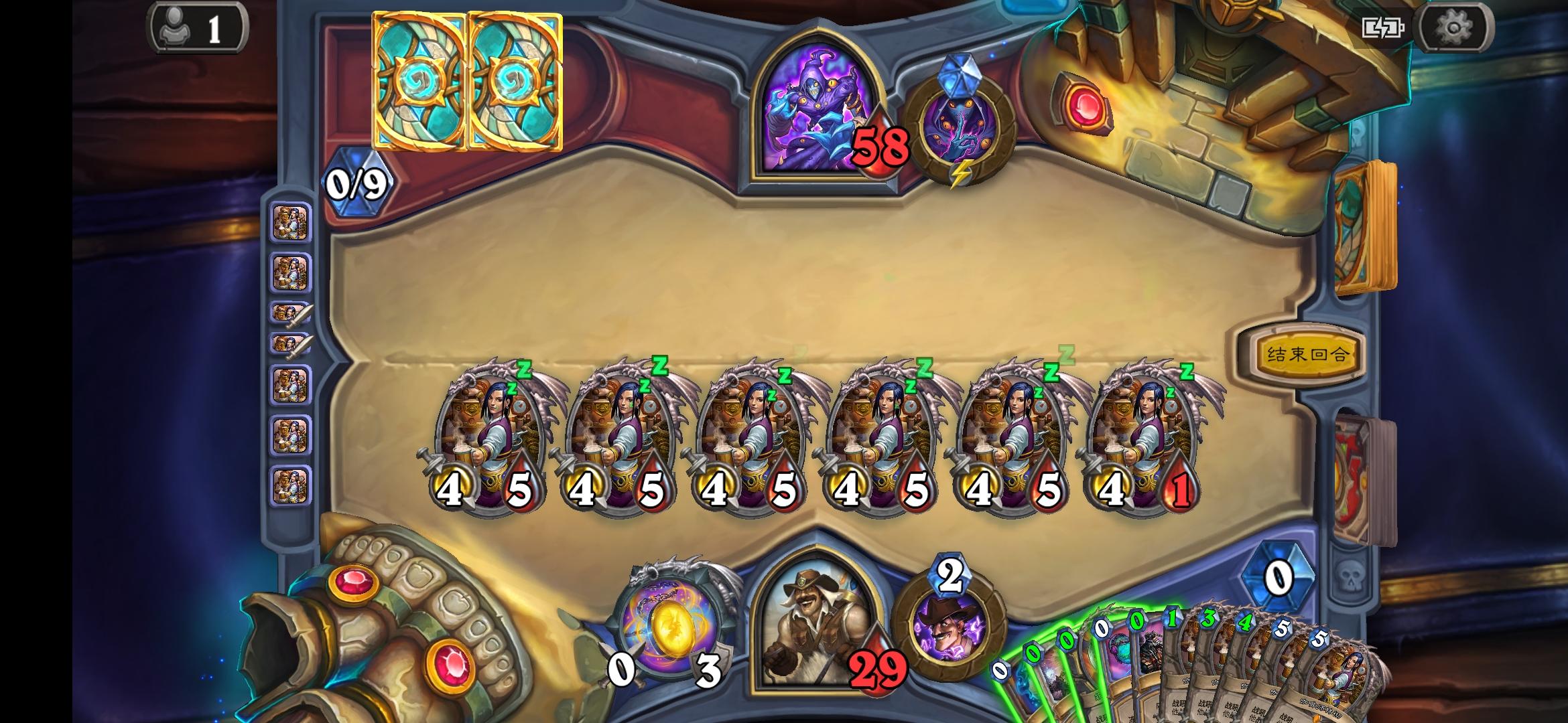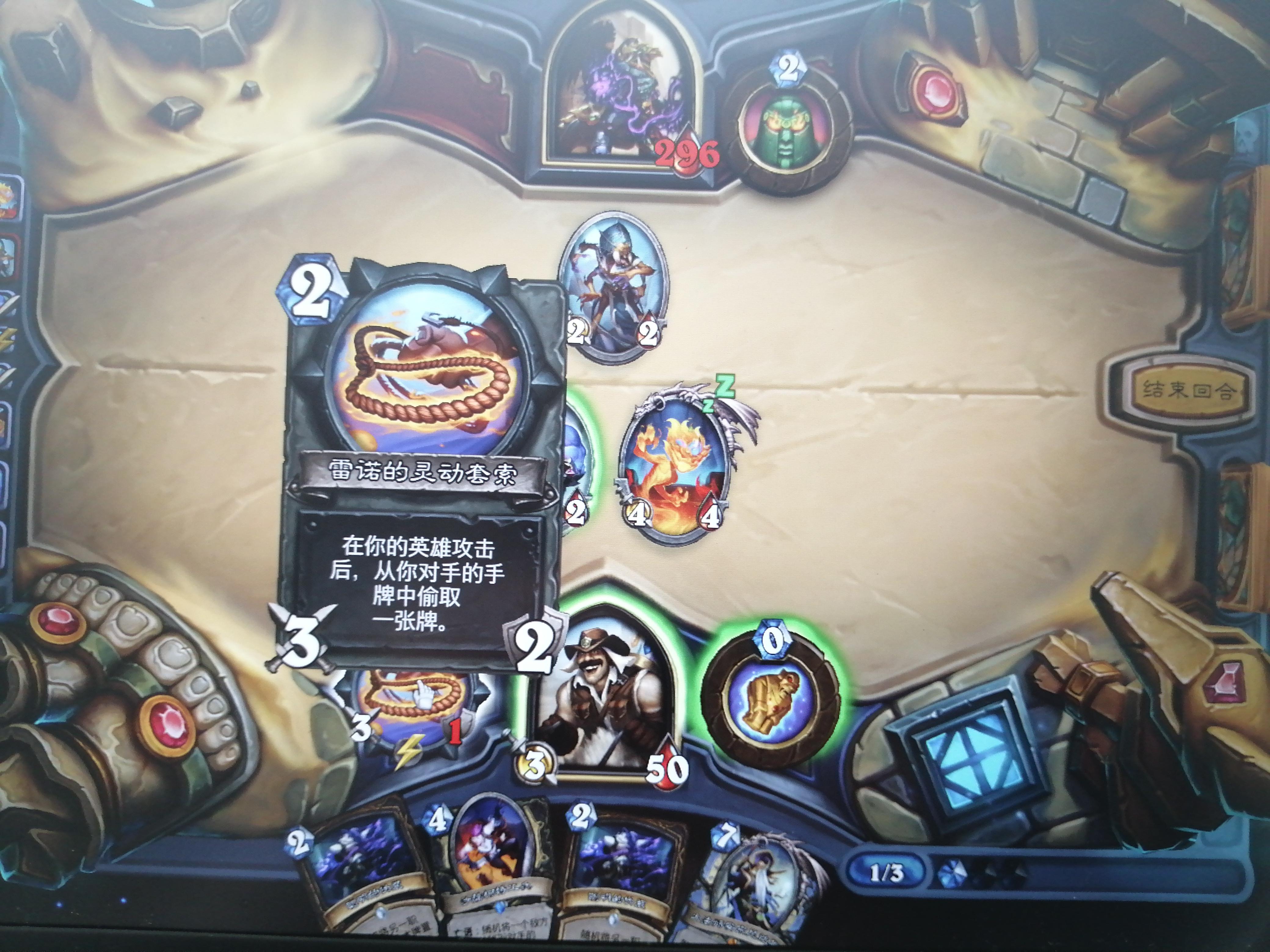 如图冒险模式达拉然大劫案初始人物小火苗(不记得名字了QAQ)最后一个boss之前从来没有打的这么快乐哈哈哈这个70血的boss真的是个憨憨前三图是牌组第四图是这样的:利用三眼乌鸦和场景5血宝箱打破送的许愿币加上憨憨boss被我用一费随从骗来的许愿币瞬间二费随从铺场(快乐*1)第五,六图是憨憨boss召了只5费8-8的随从,效果是对方每次使用法术己方弃牌三张(总之是弃三张牌的,应该