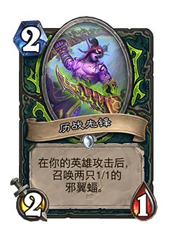 背景:月初玩的诅咒术,上分贼难。胜率在50以下,要不是有11星可能传说都上不了。战士大砍之后加入了水雷贼,传说胜率60左右,下面附上卡组。攻略:起手能留的牌比较多,有12张牌可留。起手留:豺狼人,雪落墓地(最多留一张),黑水弯刀,军情七处要挟,潜伏帷幕,简略情报。有豺狼人站场的对局胜率高很多。1费2费如果有换牌优先换牌,3费基本可下0费豺狼人。如果有潜伏帷幕,也可以3费潜伏帷幕+豺狼人