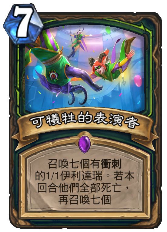 恶魔猎手史诗法术召唤7个具有突袭的1/1伊利达雷,如果本回合他们全部死亡,再召唤7个恶魔猎手普通随从突袭,亡语:召唤两个具有嘲讽的1/1随从恶魔猎手传说随从吸血:你的吸血效果是对敌方英雄造成伤害而不是治愈你