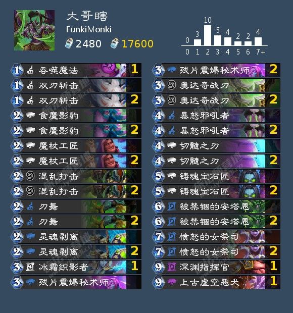 作者: / / 今天的卡组是大哥瞎、潜行贼、控制萨、任务德和激怒战。*如果没有特殊说明,卡组署名仅为使用者套牌编码:AAECAea5AwTWvgODxwPUyAPv1QMNh7oDyboDvbsD17sD4LwD18gD/MgD0c0D+84D/tEDzdID1NID99UDAA==美服玩家FunkiMonki的一套大哥瞎,他使用这套卡组打出了9胜1负的战绩。从五费以前的曲线大致可以看