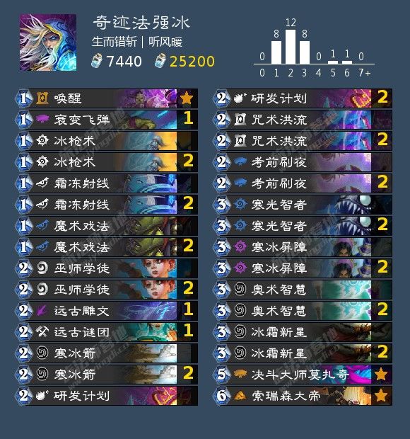 作者:黑眼术!黑眼术!黑眼术!何时才削黑眼术!今天的卡组是奇迹法强冰法、风歌换家德和两套宇宙牧。*若无特殊说明,署名仅为使用者。套牌编码:AAEBAf0EBtYRmMQC9KsDxbgDkssD4MwDDKwBwAGrBMsE5gSWBfgHtPwCn5sD/50DwbgD99EDAA==来自生而错斩|听风暖#5170的一套奇迹法强冰,卡组灵感来源于标准莫扎奇冰。因为有冰箱冰环控场加直