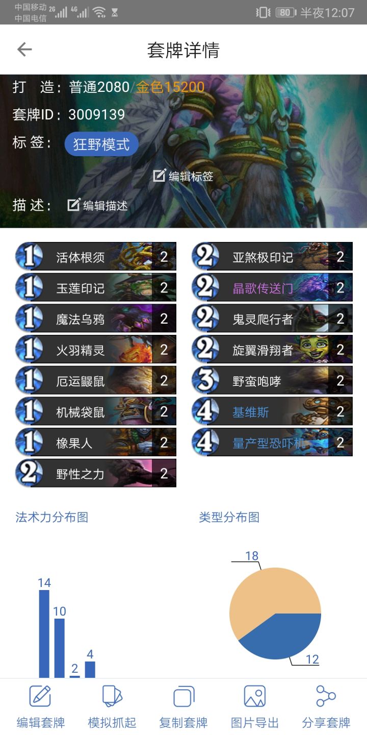 这是一套我在狂野5000分段左右划水的萨满卡组,打了35把,最终以80%的超高胜率让我不得不分享给大家(由于时间关系,我就不详写了,要睡觉的)在上一次的补丁中,把洪流从5费加强到了4费,正好填补了本卡组4费法术的空缺,让这套卡组的节奏更加顺畅,可以看到这套卡组从1~6费都是有法术的,整套卡组一共12张法术,***蟆之灵的下限至少为1,而且抽到一张就不亏。本套卡组设计了很多的组合技,喜欢刷杂技