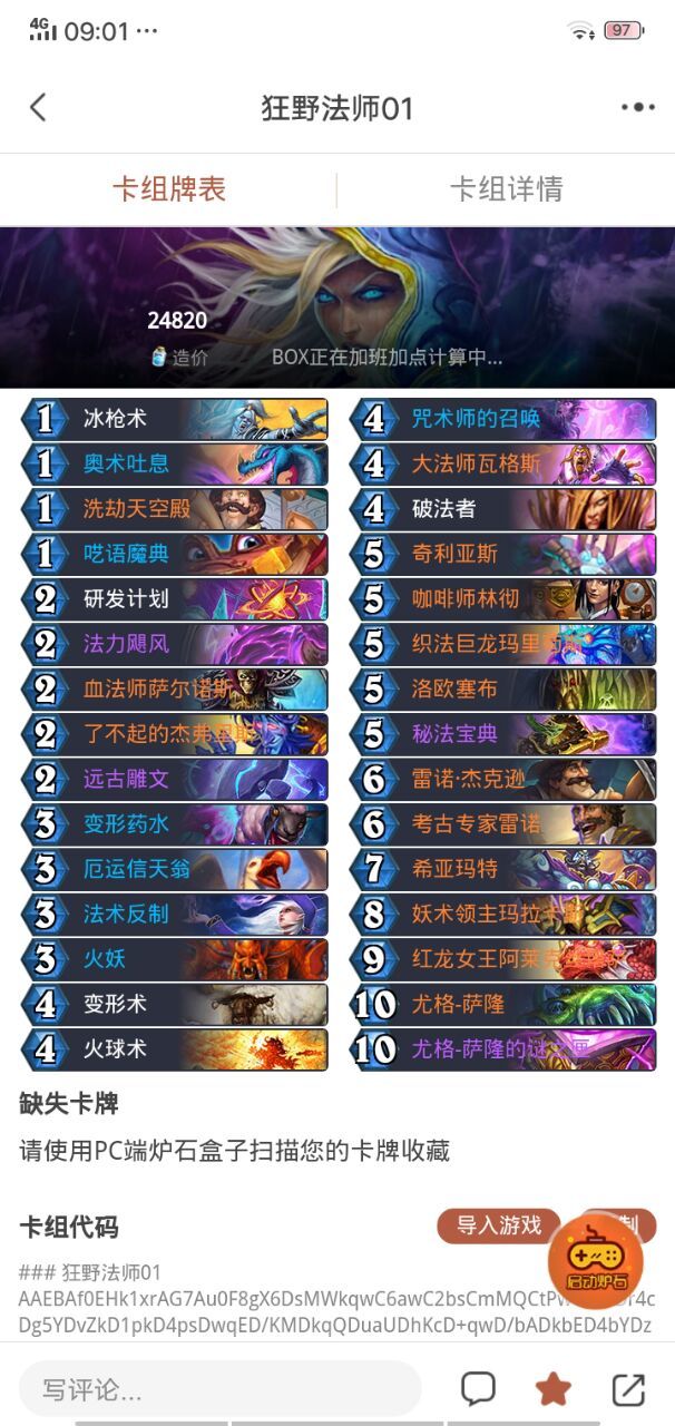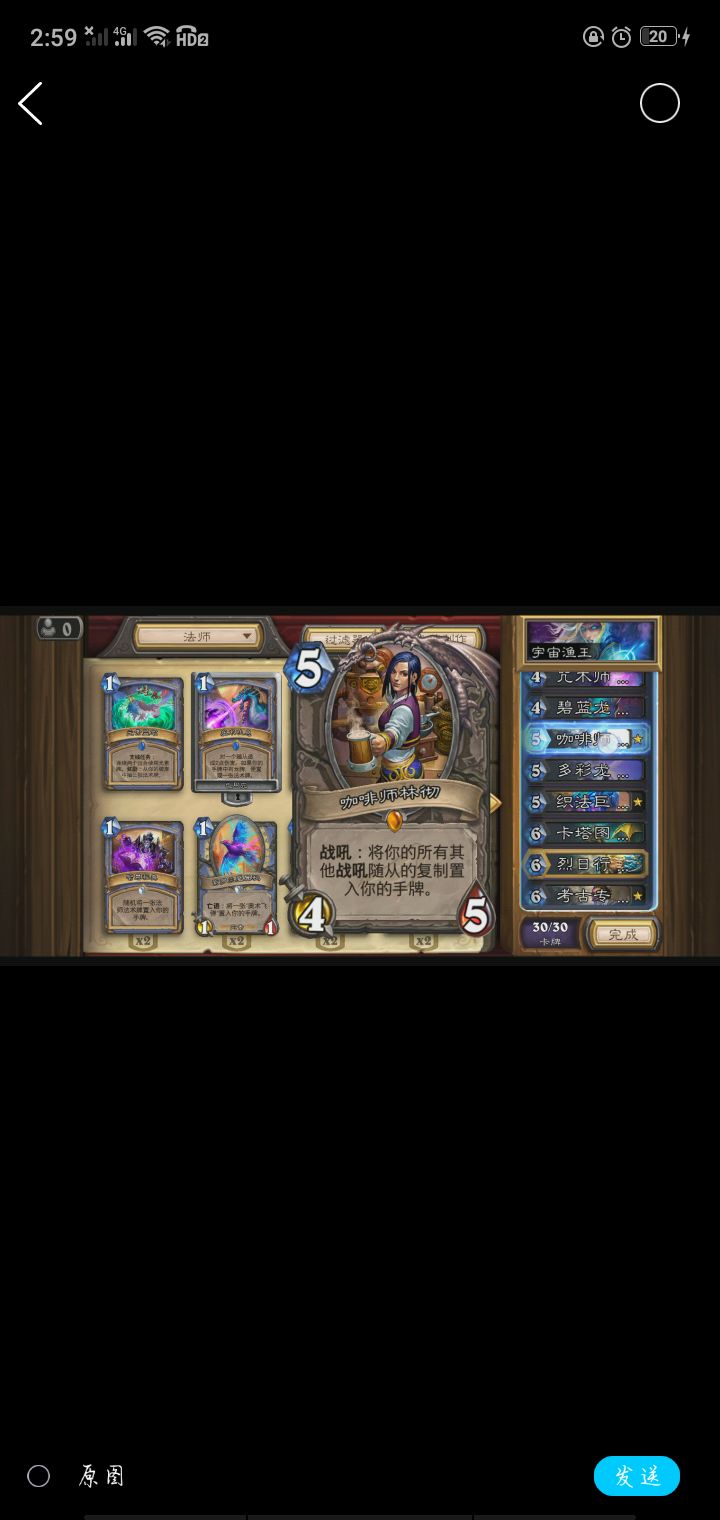 hello各位论坛大佬,在下黑色的音符,刚入坛的萌新一枚。看到有活动就过来参加了(手动滑稽)。咳咳,话不多说,希望我个人的见解可以对法师玩家有所帮助(本人也是一个法师玩家),不足之处希望大佬可以提出,轻喷。PS:卡组在帖子最后QWQ新版本各个职业都在秀,法师虽然牌的强度也有,但不同于其他职业,萨满就不说了,大家都懂。战士有海盗战,狂野天胡起手一回合拉满,还有狂野的撒币贼,手牌术等等。作为法师,牌