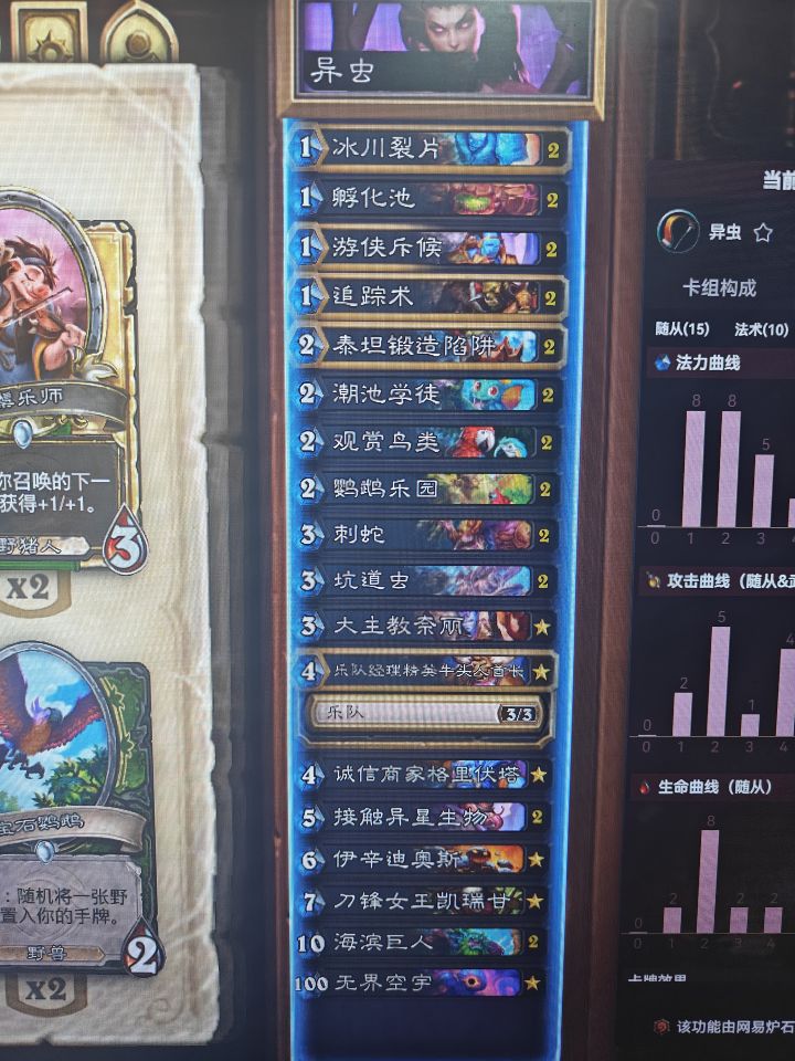 可快可中可慢,更偏向中速几个赢点1。 1 2费两个地标连拍,三费混一下,最好是3费过两张异虫,4费最胡的情况就是,一堆突袭异虫解场,42异虫打一波伤害,两个0费88巨人,甚至还能剩两三费,如果奥秘还能挂个冰霜,基本就压死了2。前期蹭血,中期变身,靠囤的异虫和英雄技能打伤害3。老奥秘猎打法,靠异星,锻造法术,22学徒,45商贩打节奏压制4。究极后期打法,无限照片,1费12加牛拿两张拍照就可