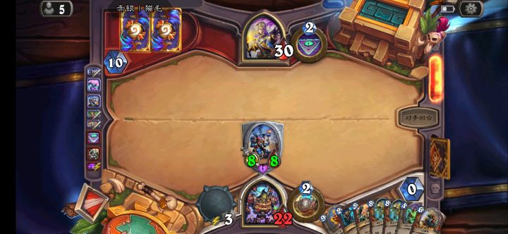 (此攻略内容仅含战士职业的对弈经验)(因为其他无叠甲职业不一定能抗住一轮心火)1,前期下怪过滤手牌,可以下113、112、534或者复生432之类的让对面吃。然后,不要攻击!千万不要攻击!!!(反正尽量拖着,别让对面有机会做任务就完事了,这是最贱最重要的)2,如图,楼主这局拖到牧师即将疲劳,对方才刚刚完成任务,但此时对方生物和解牌已经消耗殆尽,野猪otk也已被咱小光头吃进伤害,5费消灭受伤清