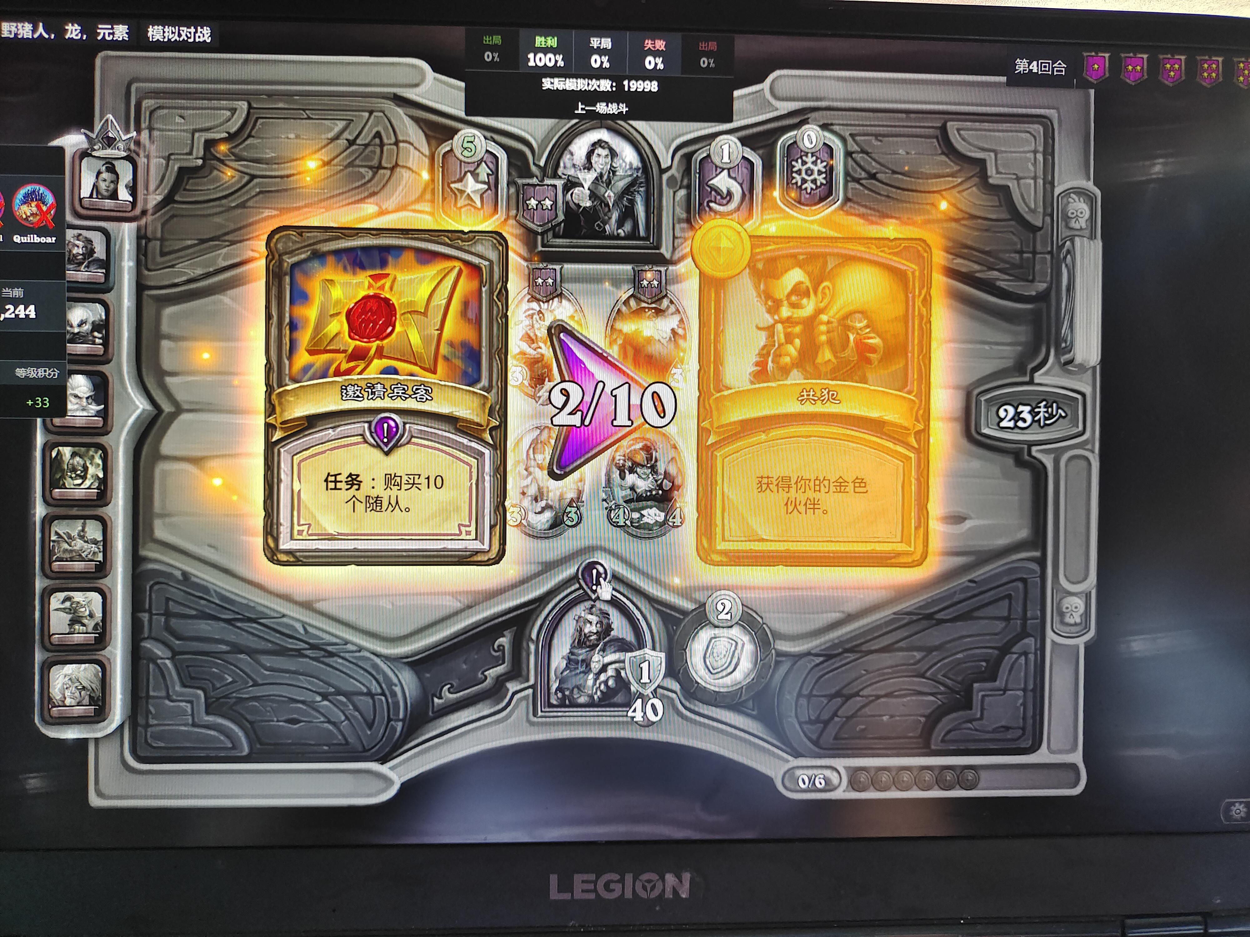 任务是花40枚铸币,被一通暴打之后完成任务,那时我场上是有魔灵的,刷新不用钱,刷第一下,给了一个金偷偷龙,刷第三下,给了我一页功能牌什么小黄螳螂妖瑞文铜须乌瑟尔架墙啥的,直接偷了上家大帝金糯米金铜须,还能经常刷出很多奇奇怪怪的对子啥的可以看得出来我是个菜🐔萌新,但这喂鸡球也太离谱了