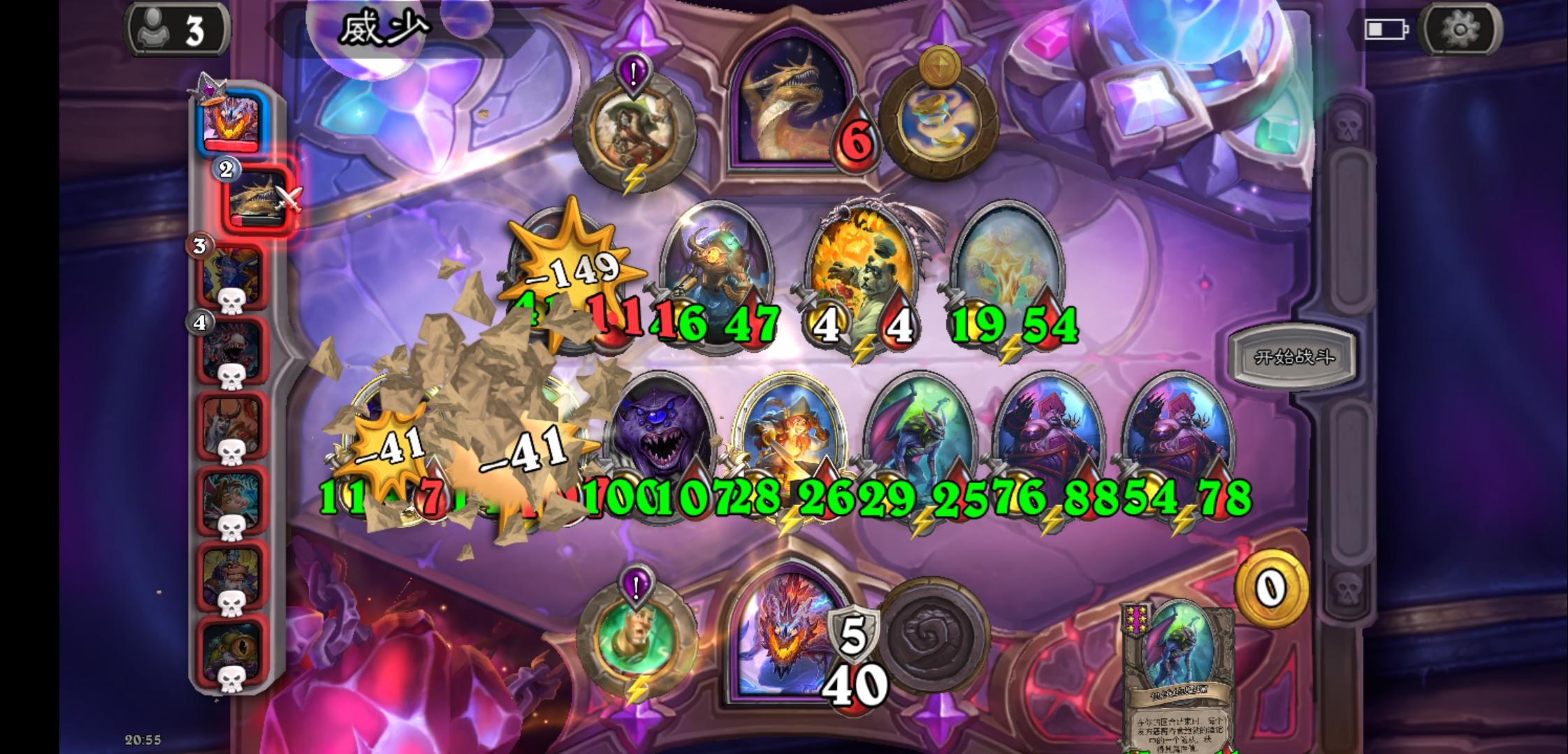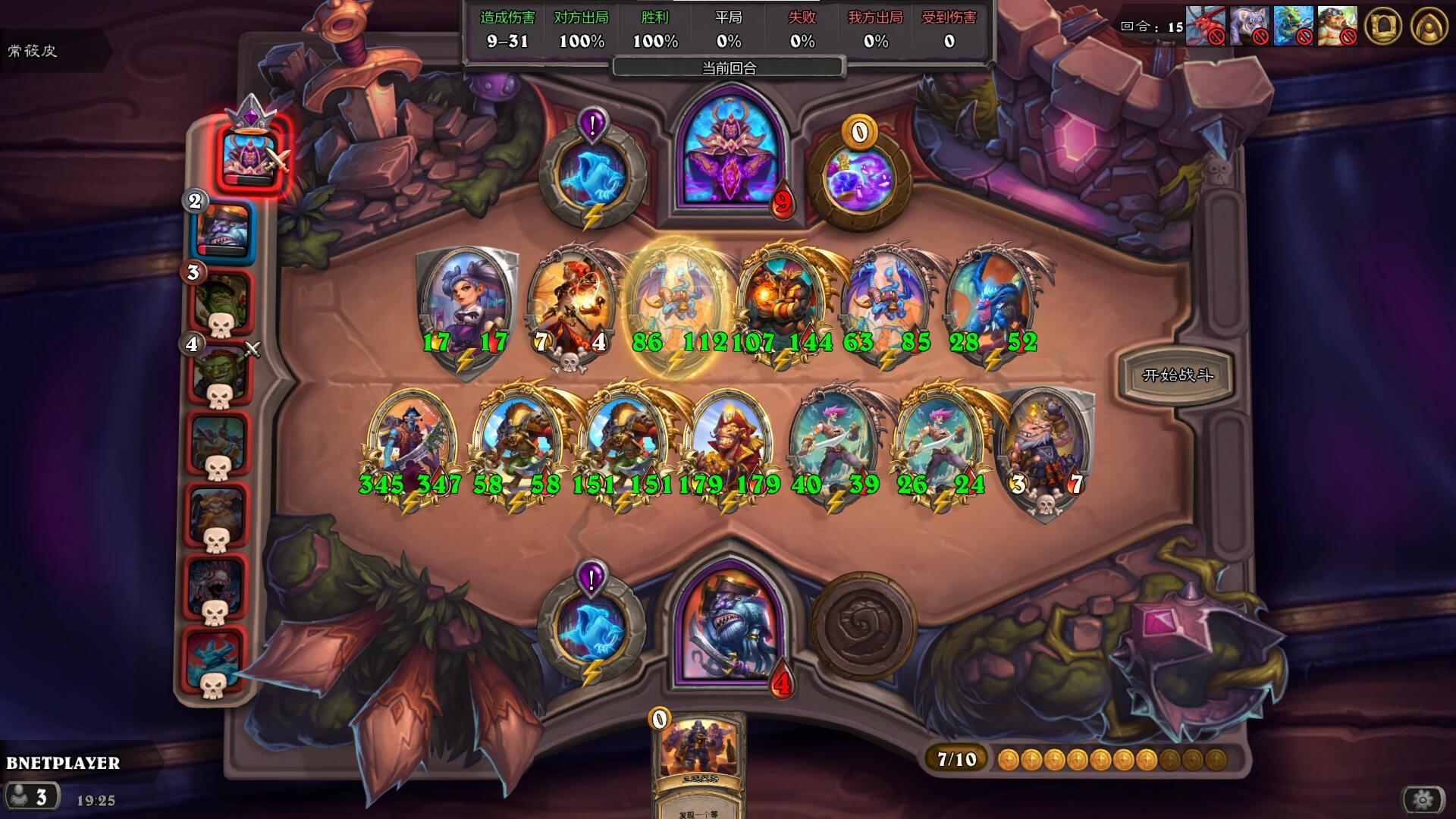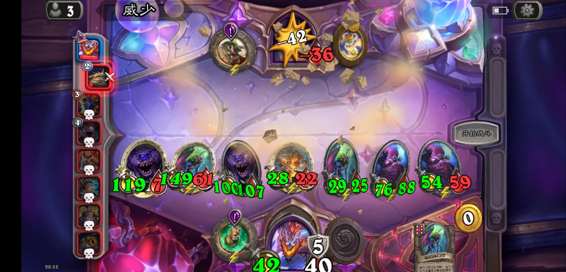 天梯玩家,3500分的局,任务奖励是回合结束生效两次,给一个光牙,走的自动化路线,感觉是我本人有史以来玩的最好的一局,有待完善的是左边第一个野猪人应该换那个风怒圣盾的那个五星野猪人,融合怪也没有贴毒,可惜这局一下子就结束了,没有时间完善了。