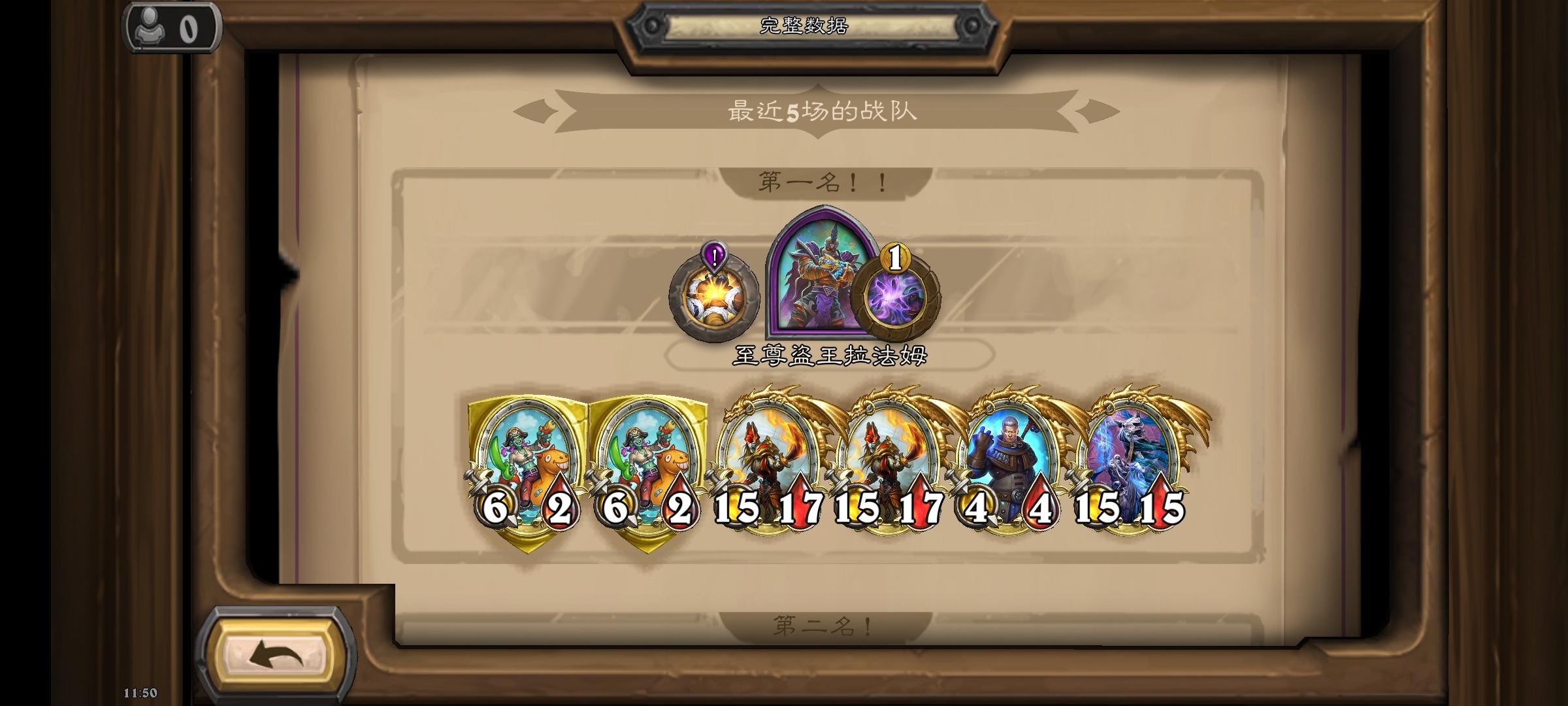 决赛大战传血泰雷,可惜等想起来录屏的时候已经结束了。第一次遇到传血泰雷的时候,我都准备投了下一把了,结果他就一个金泰雷打到最后,差了两血没弄死我😂。完事两个偷偷龙和铜须刷脸上偷了个瑞雯过来,决赛对面估计没搜到螳螂,七十攻七百多血的泰雷还是没打过我的两个。不得不说这次更新的任务体系可以玩以前只能设想的一些阵容,还是挺有趣的,就是玩了两三天了没见灵感球😂