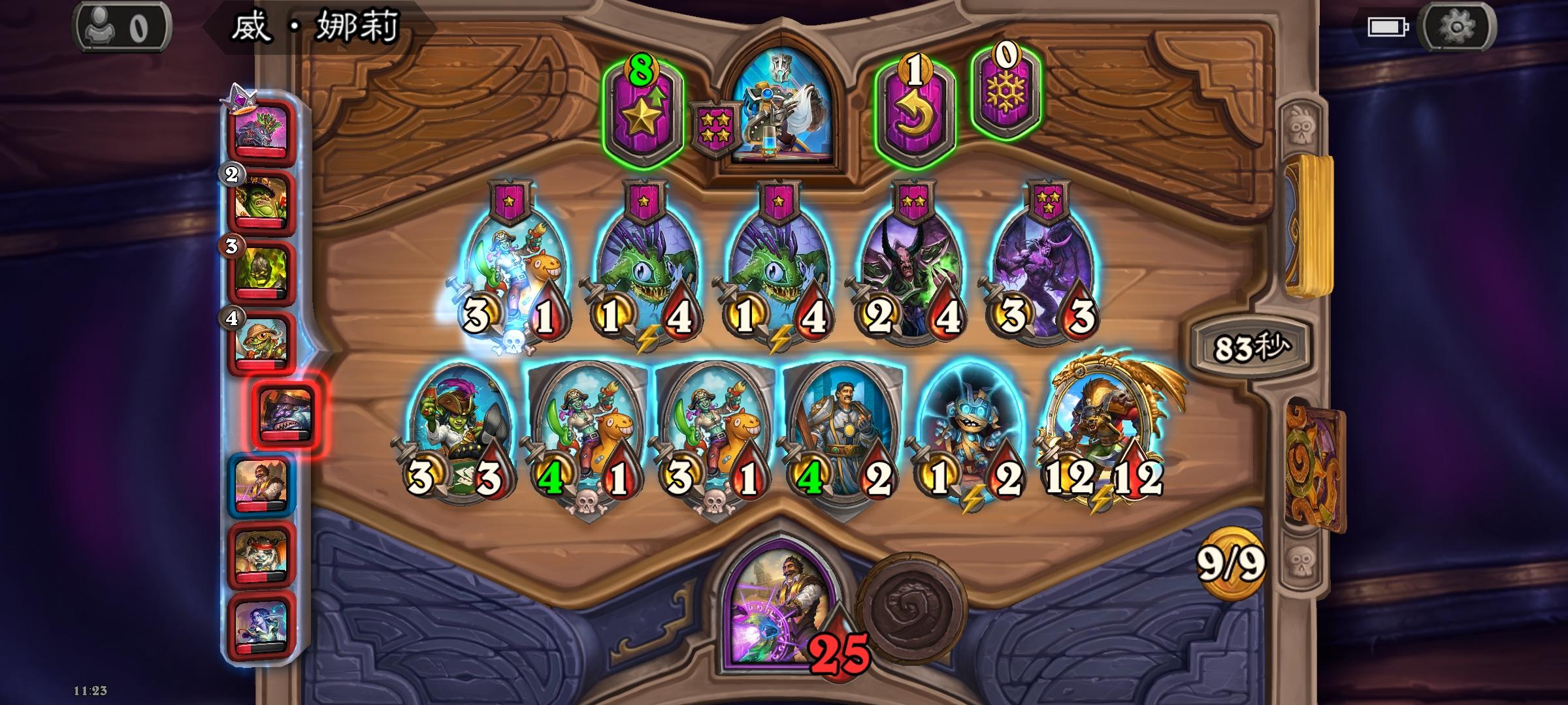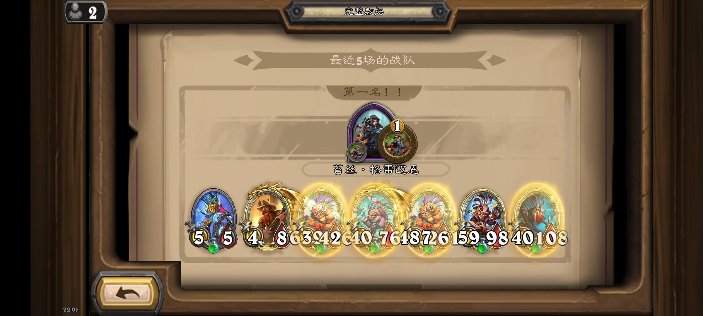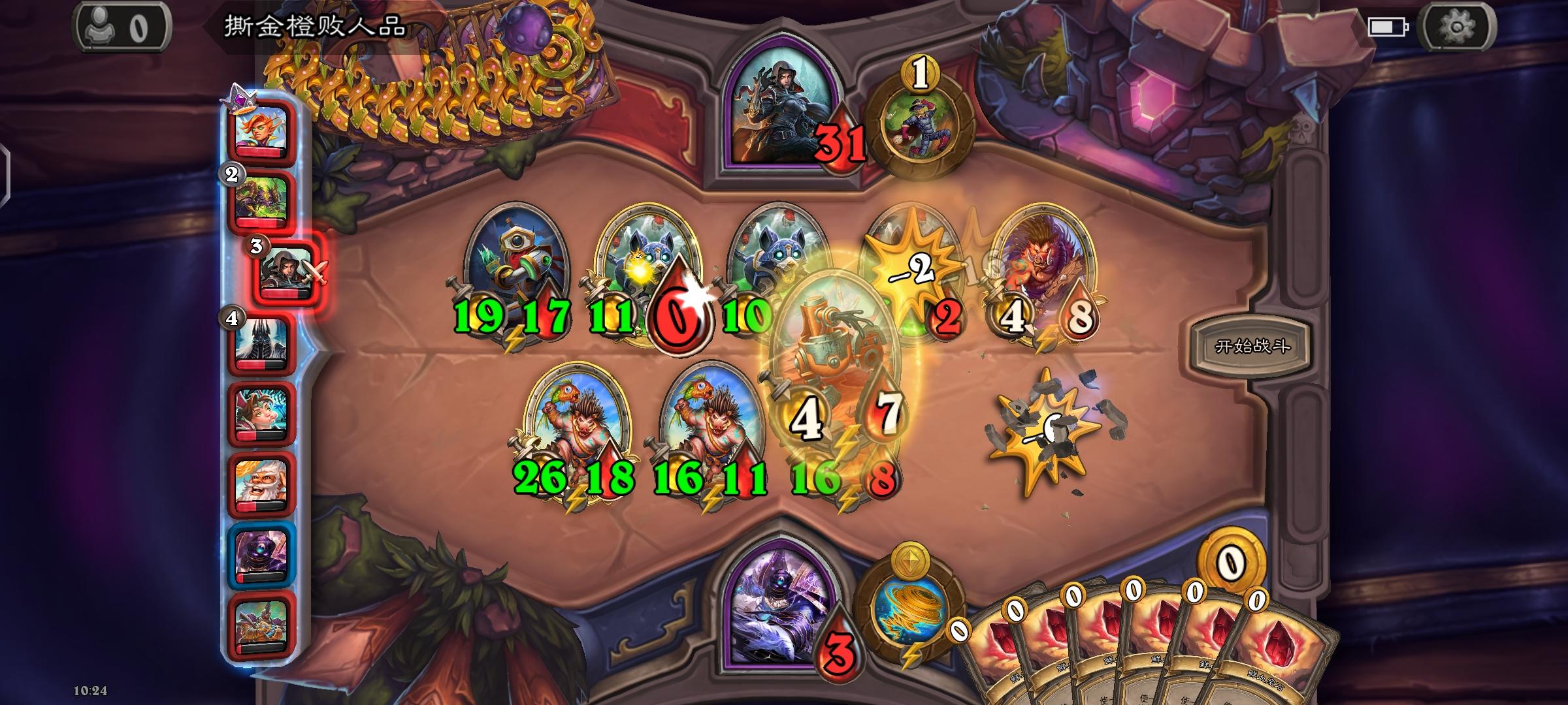 哎嘿,决赛大使好大的风怒猪打的我嗷嗷叫,我26血直接被打了三十多伤害,还好之前5费时候点了寒冰屏障。再战用JK技能点了个螳螂,大眼给了个嘲讽娜迦,一切是刚刚好,直接21点伤害把大使送走了😂,他三个大哥,超级风怒和两劲爆都吃了毒了