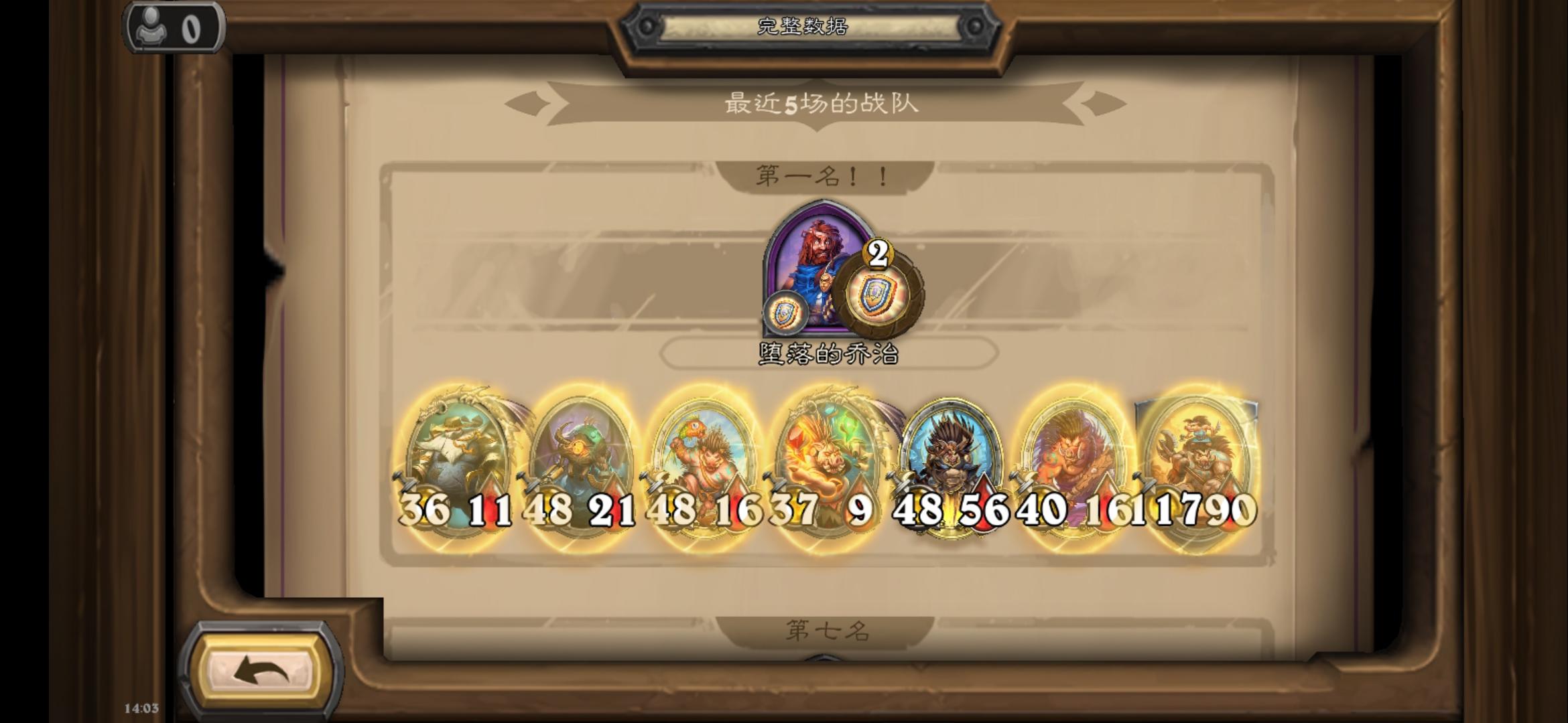 娜迦还是强啊,雷鳞海妖挪到五本其实意义不大,因为都是九五甚至八五碰主母,本身前期除非发牌员PY不然拿不到海妖的。下面这个玩野猪人的,我九五出大眼,他九五出主母,当时二十多滴血还入了我一波,谁知道几回合不见跑去玩野猪人了(估计技能六本出了野猪人),我自己卖血跳六拿到张主母,跌跌撞撞苟到最后一看,他可真弱…