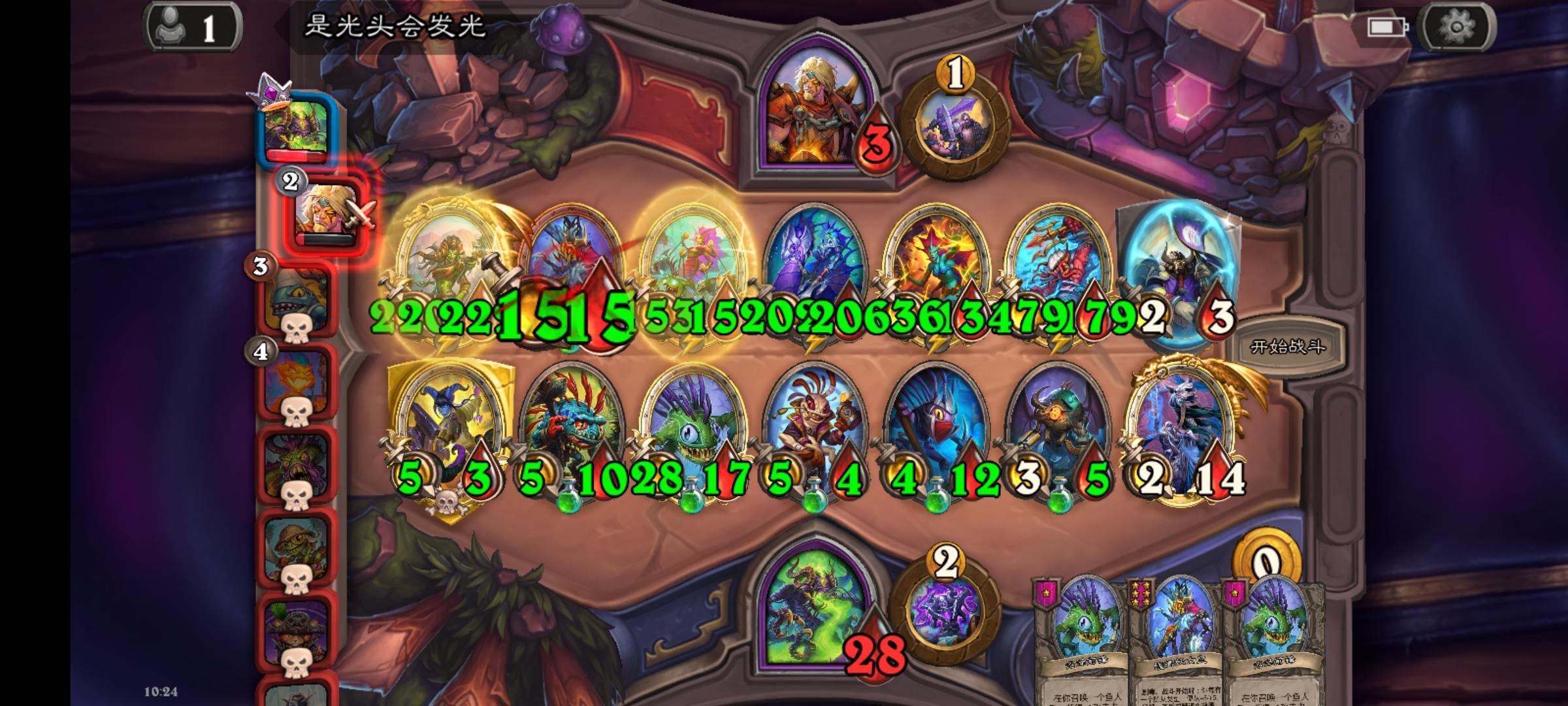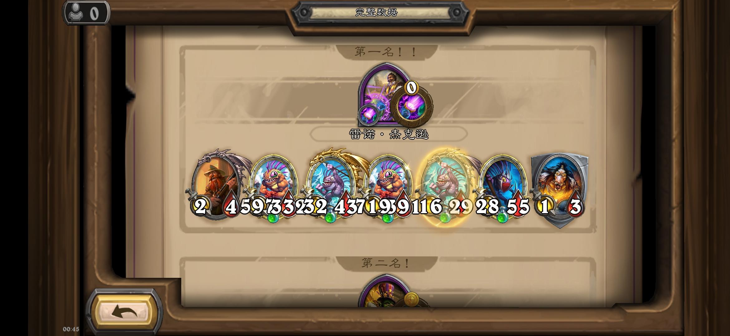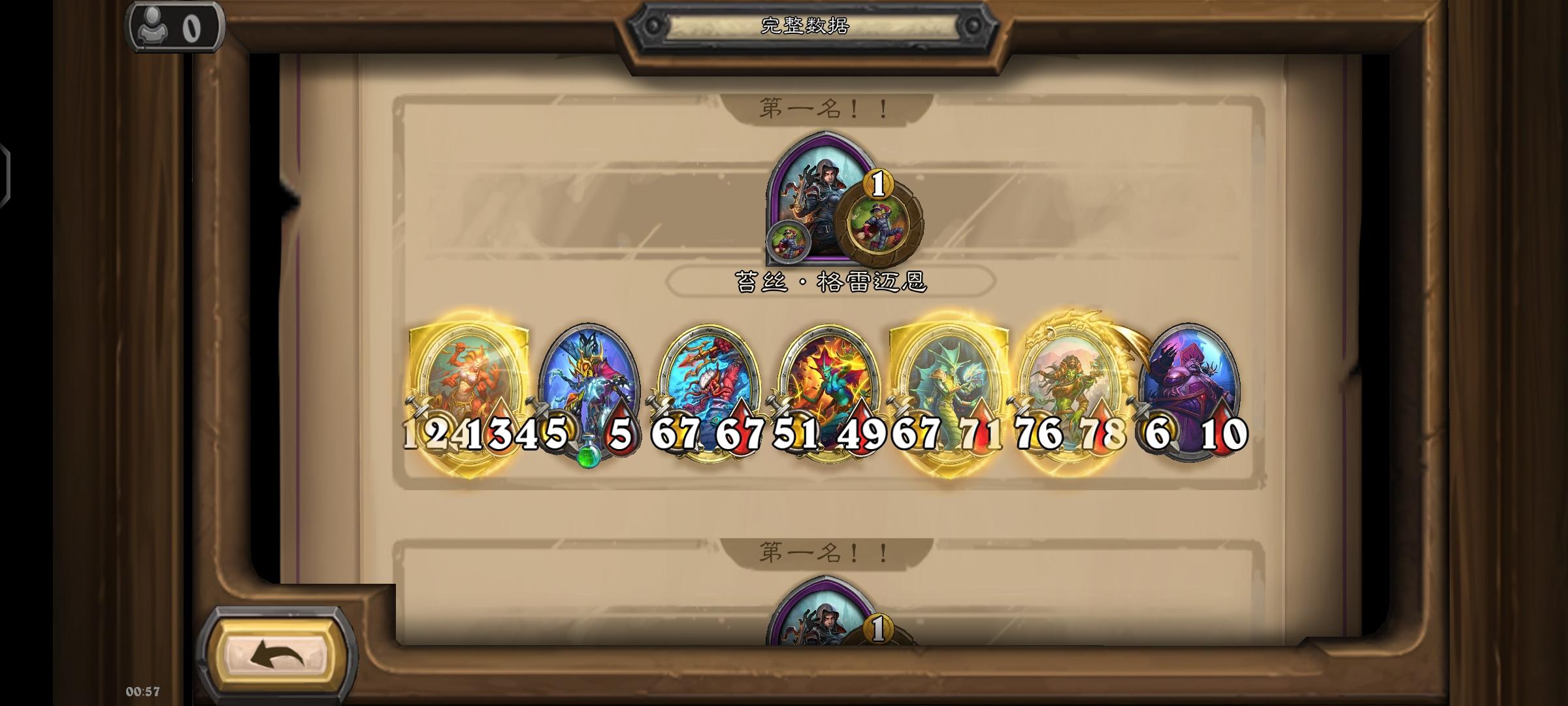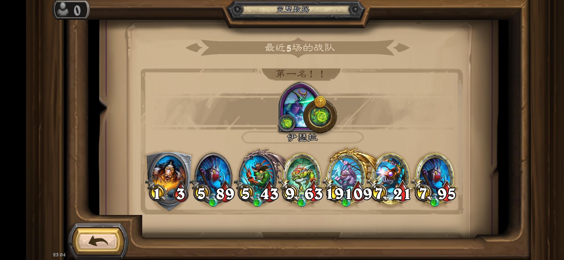 现在手机玩太卡了,资本家根本刷不起来碰五出霍格并点金,在五本又搜到了霍格。开始刷刷刷。(之间又点金了一个练腿,后来又搜到一个金练腿)结果卡到死,动画要半年,大退也不能立刻回去。平均每回合只有90秒不到的时间操作。而且这90秒能做的操作量甚至不如之前的50秒(买一个随从卡好久,无法立刻翻页刷新)没优化好之前不建议用手机玩需要刷刷刷的英雄(电脑不知道)决赛团战一拉胯,输给了狂风之翼娜迦流。