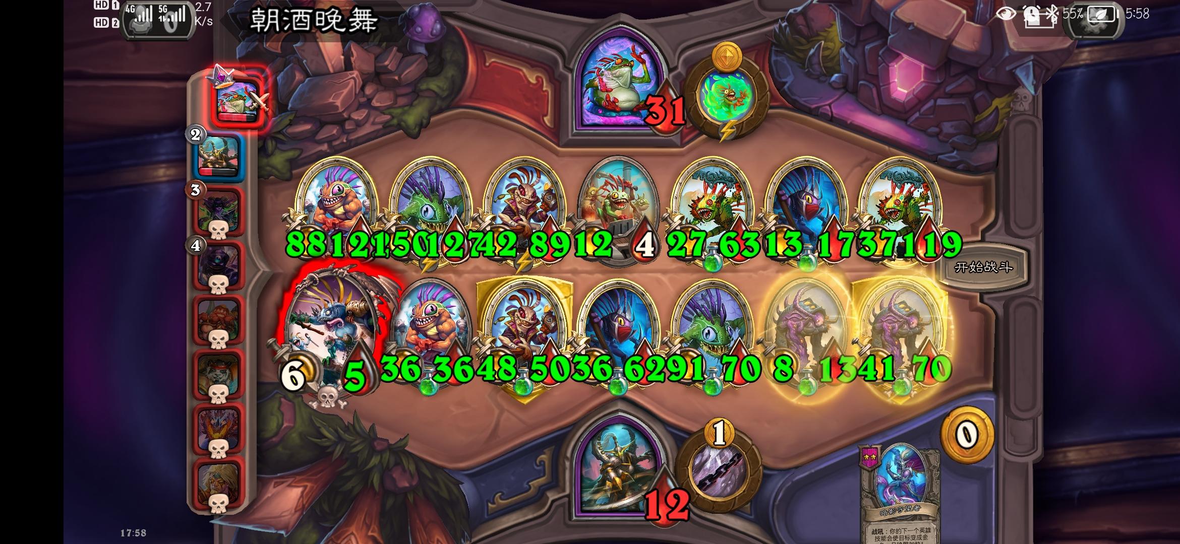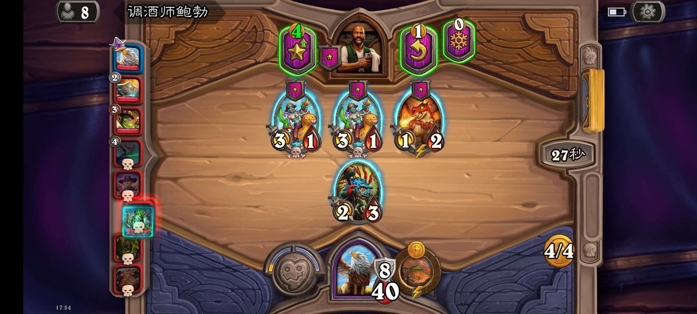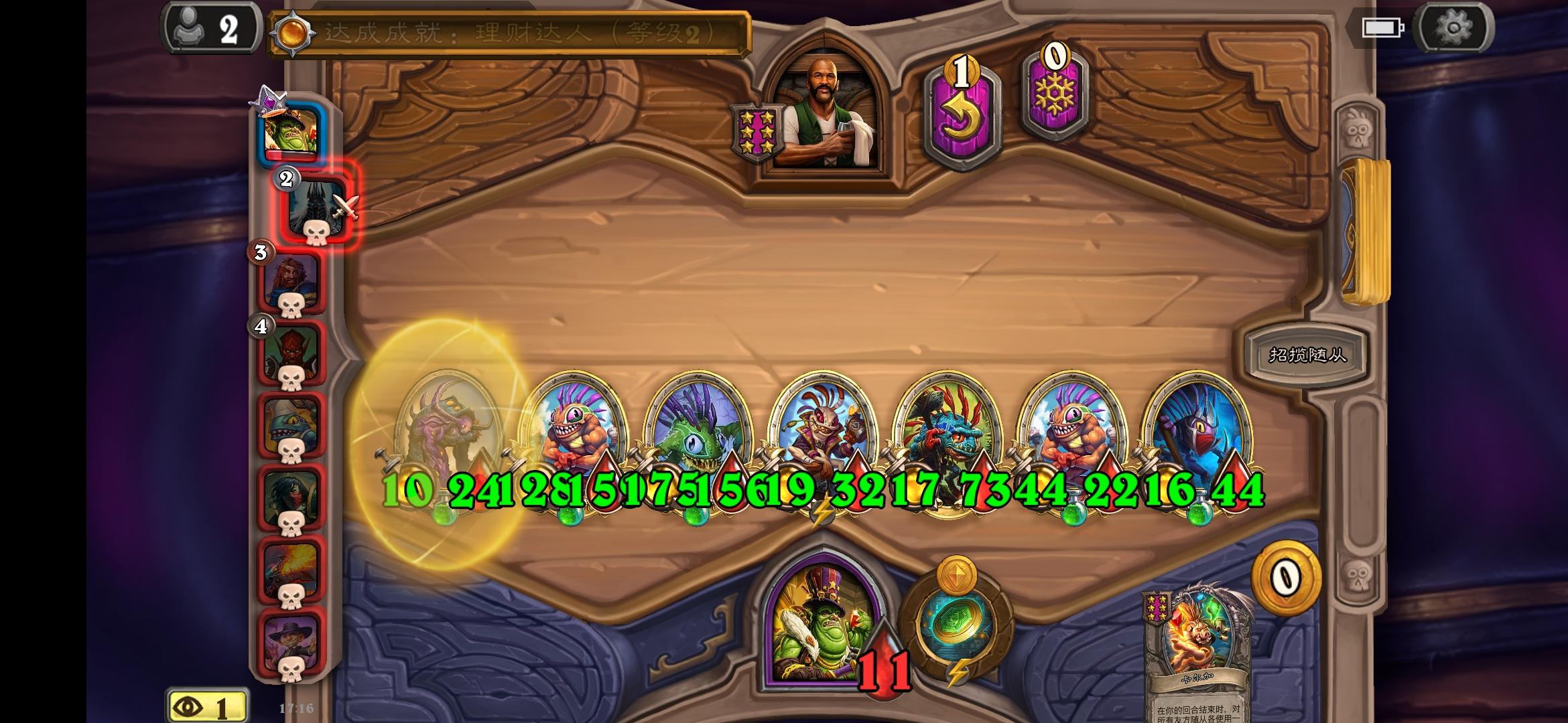 开局跑五个,接着有个打不过我跑了,然后只剩下两个无限互相打,我连续赢了他两次,每次就打他两三点血,结果他也跑了…8金币就结束了,总共打了五回合