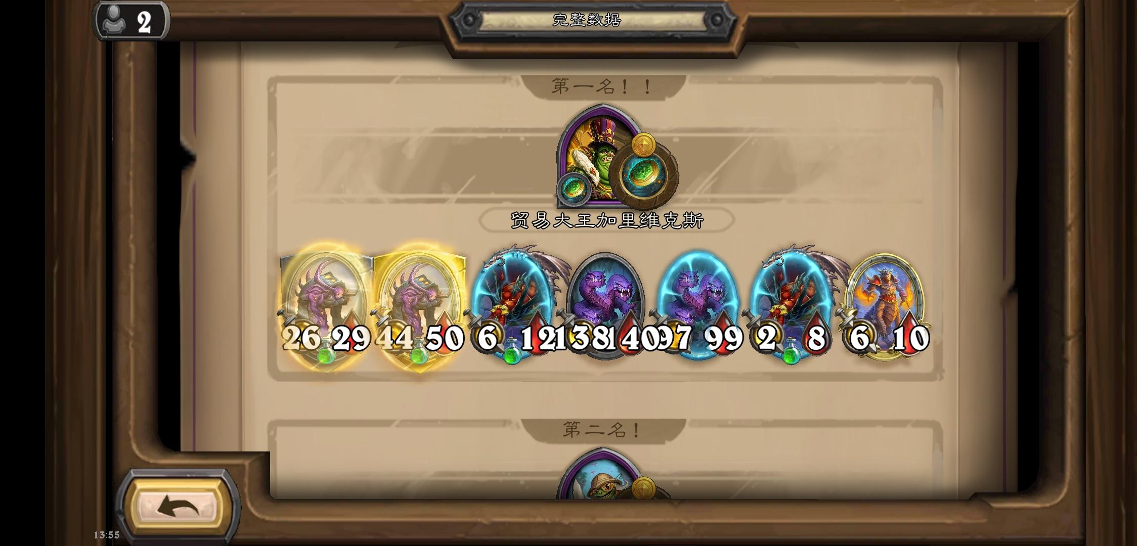 不得不说大螺丝是真看脸。今天玩了两把大螺丝。第一把碰五碰出一堆废物,毫无疑问的速七了。这把碰五出光牙,四本又搜到了狂战斧和圣盾元素。升本搜到了暗牙和掘金者(一本小海盗是最早的金色随从再加上一开始被加成了个小大哥就没卖),之后又搜到了两张光牙。于是这把就吃了