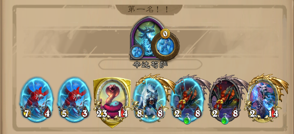 记录一下香蕉哥首鸡。这里特别表扬一下融合怪,上场时场上就三个种类随从,进化出圣盾风怒剧毒,把体型巨大的一本流巴兹亚尔抬走了。决赛又抬走了一个下毒鸡杂,牛逼