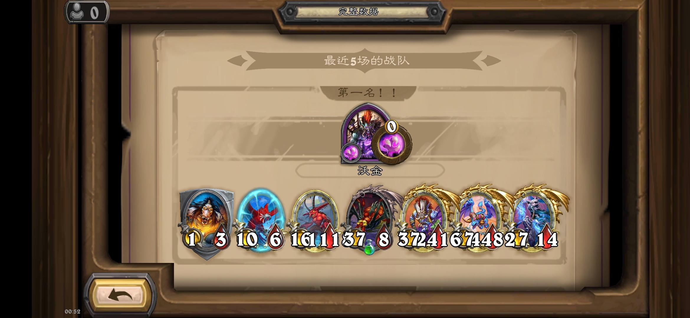没元素、龙、机械的局,唯一的圣盾只有野猪人,前期靠金小粉养攻,决战打完全体跳操针对了一手,沃金真的万金油