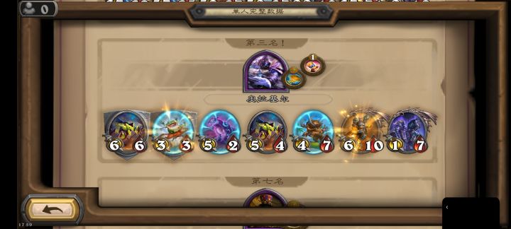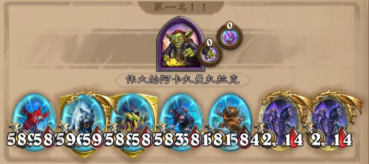 这一把赢得太不容易了。对面机械完全体,金6本亡语机械、双金瑞文、金鱼、四本记忆龙配俩融合怪。多少万已经看不清了。第一把被他打残了,然后他和老三打,我弄了个改技能的酒馆法术选了恩佐斯的猫,本来想舔包老三的金瑞文,没想到发现的是进击怪,还带有复生。决赛局他酒馆法术估计没刷出来,把金鱼卖了偷我的7本亡灵。7个进击效果,楞是把他俩超大融合怪给送走了