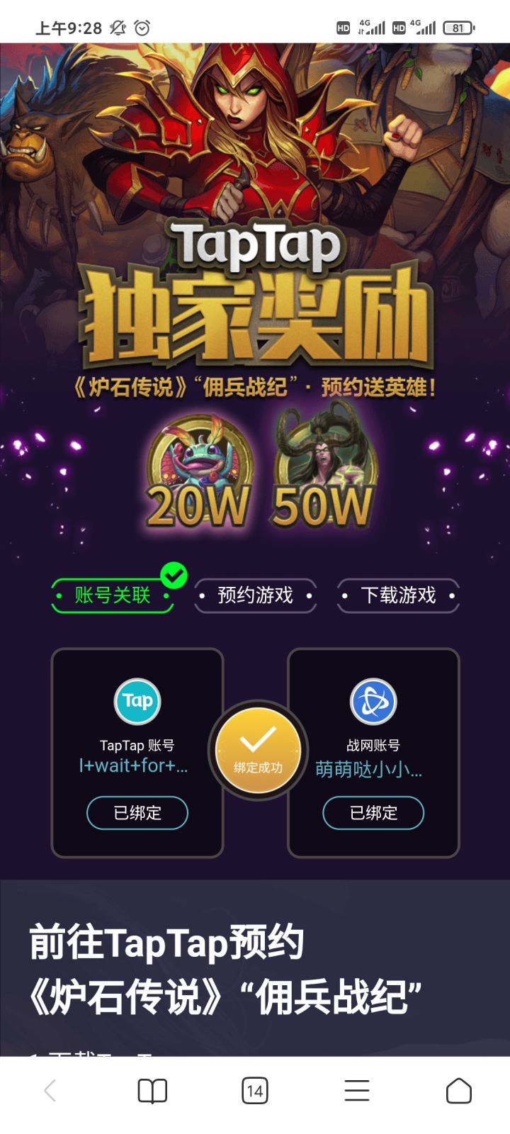 为什么战网外服账号绑定不了,希望官方出来解释下😈