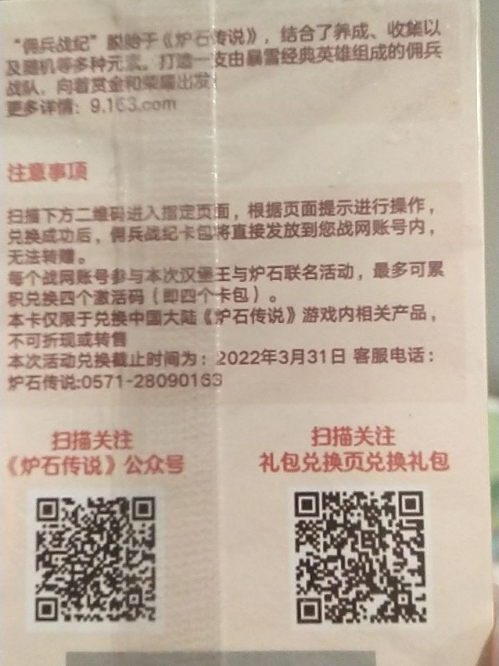 兄弟们炉石佣兵卡包兑换码我买多了有要的嘛,三块钱一个佣兵包兑换码,一个友谊赛换一个也行,我就四个先来先得