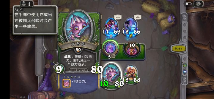 克苏恩的装备,克苏恩之口,加x攻击力,随机消灭一个敌方随从,入场之后没反应啊,只加了攻击力,没消灭随从啊,如何触发?