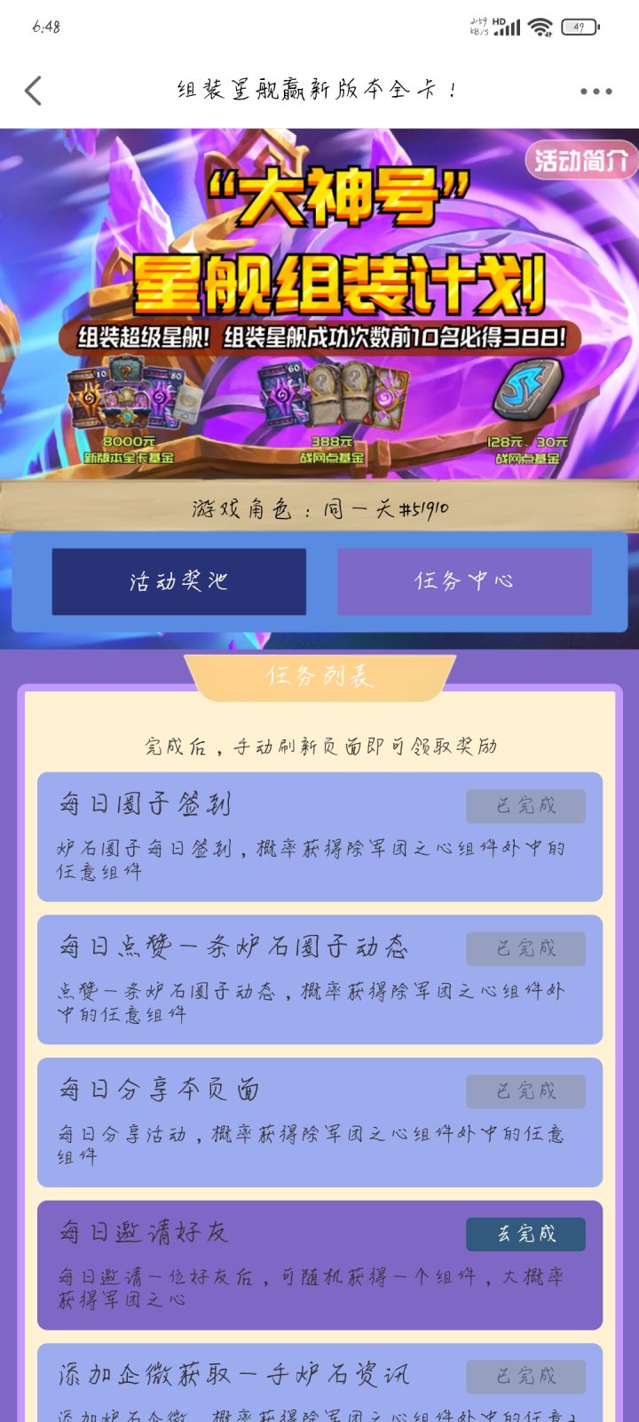 【输入我的邀请码11053886,快来跟我一起领8000元全卡基金吧!】复制文字到大神,即可打开活动页面¥https://act.ds.163.com/38cdd50e6996ce39/universal/671b72ac9b8e8b7816114bf4¥#炉石传说 #大神活动