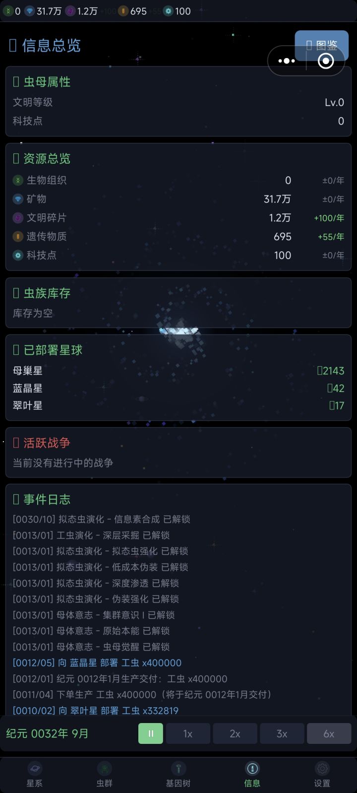算是个有点上手难度的策略挖矿游戏,玩家需要不断生产虫群投入到星球上,得到资源后再反复生产,形成规模后通过不同的条件征服星球。目前游戏还在测试阶段,数值平衡还不够好,星球状态和虫族数量还非常的少,可能存在很多bug,希望大家及时提出反馈。