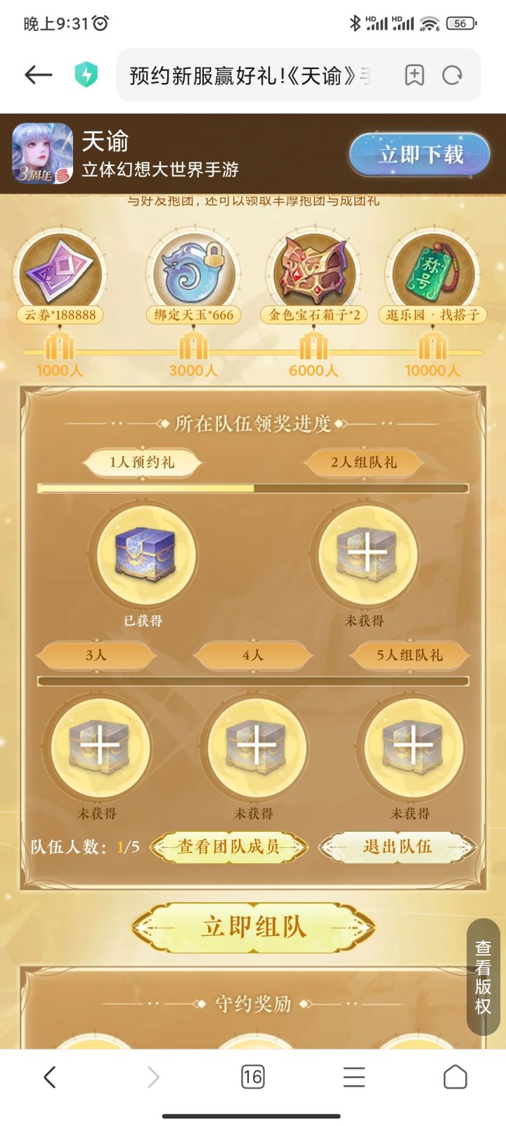 三周年服组队预约