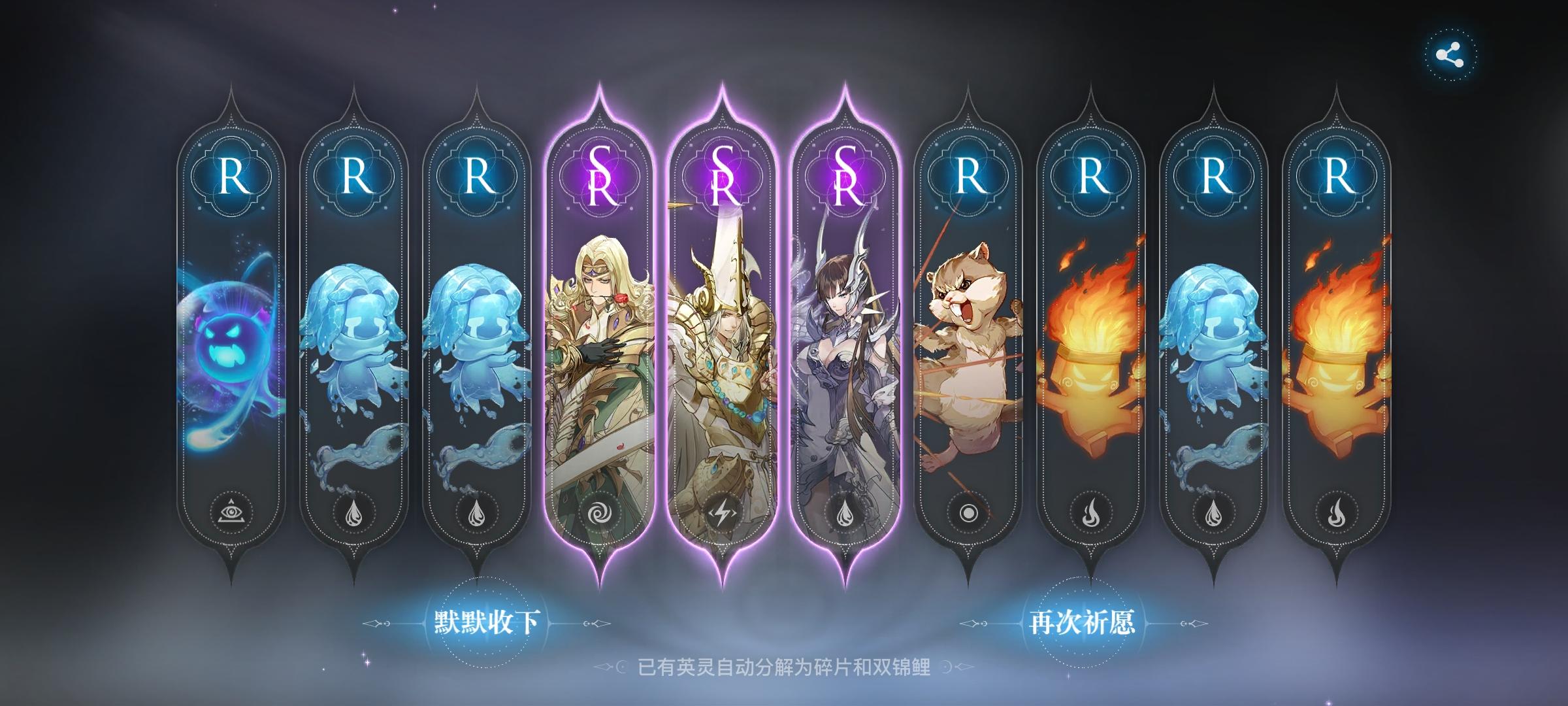 见图抽卡天天是这三......别人都有ssr了,我什么时候能有我终于找到窍门了hhh这是打公会那个boss的时候,蹲墙角认识的两位,后来有人打我,他们帮我打回去了hhh 然后一直苟到结束,觉得好闲适啊。当中有个乐师贼厉害,好像什么乐谱都会呢,好多人问他,可惜我和另一个妹子都是侠盗,听不懂......就觉得好听......这是生死战,苟了几次,队友有一个刚的,刚了几次,我突然觉得刚也不错呐