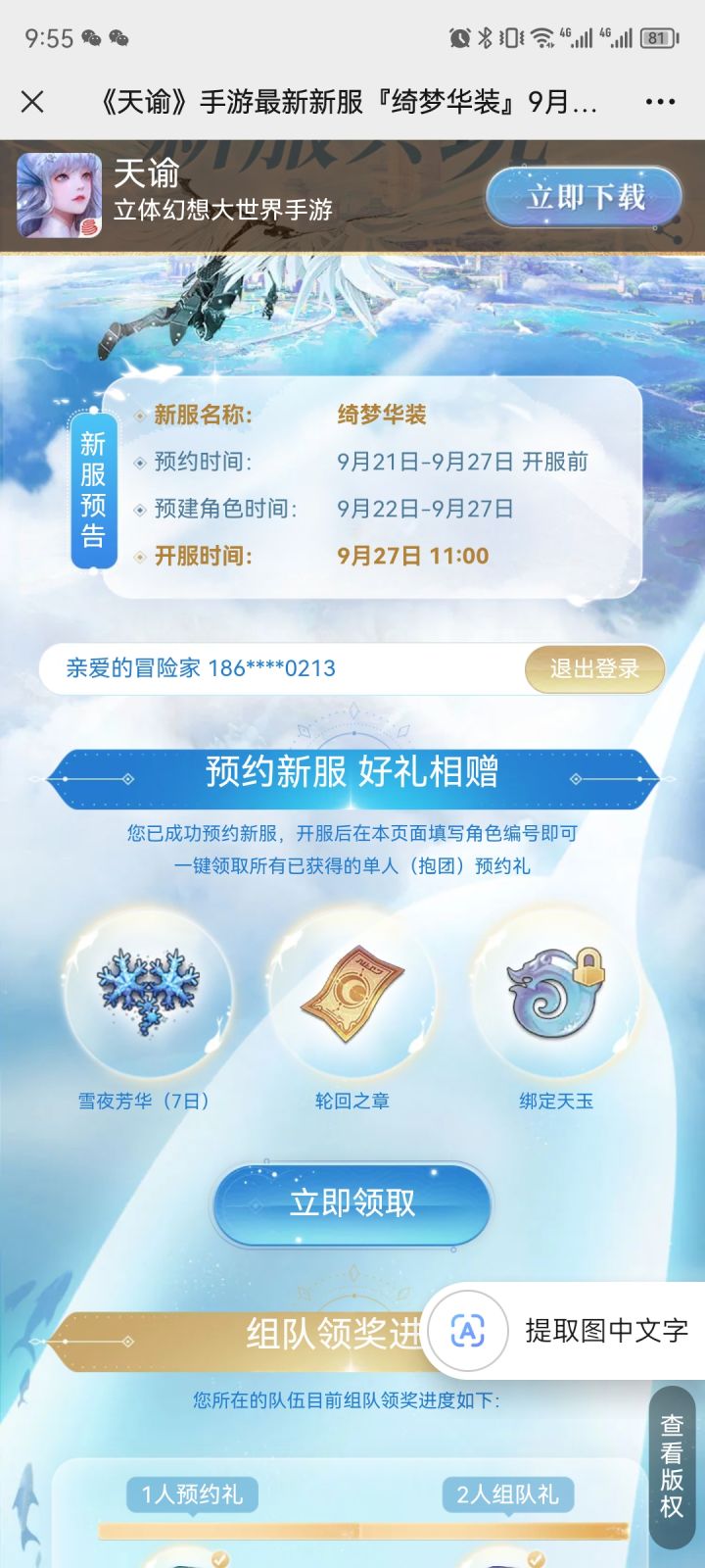 新服预约https://tym.163.com/h5/20220209/rlrxf/lepcmlqg/#/share?fromPhone=173****8846&inviteId=DmRFlovw&channel=game