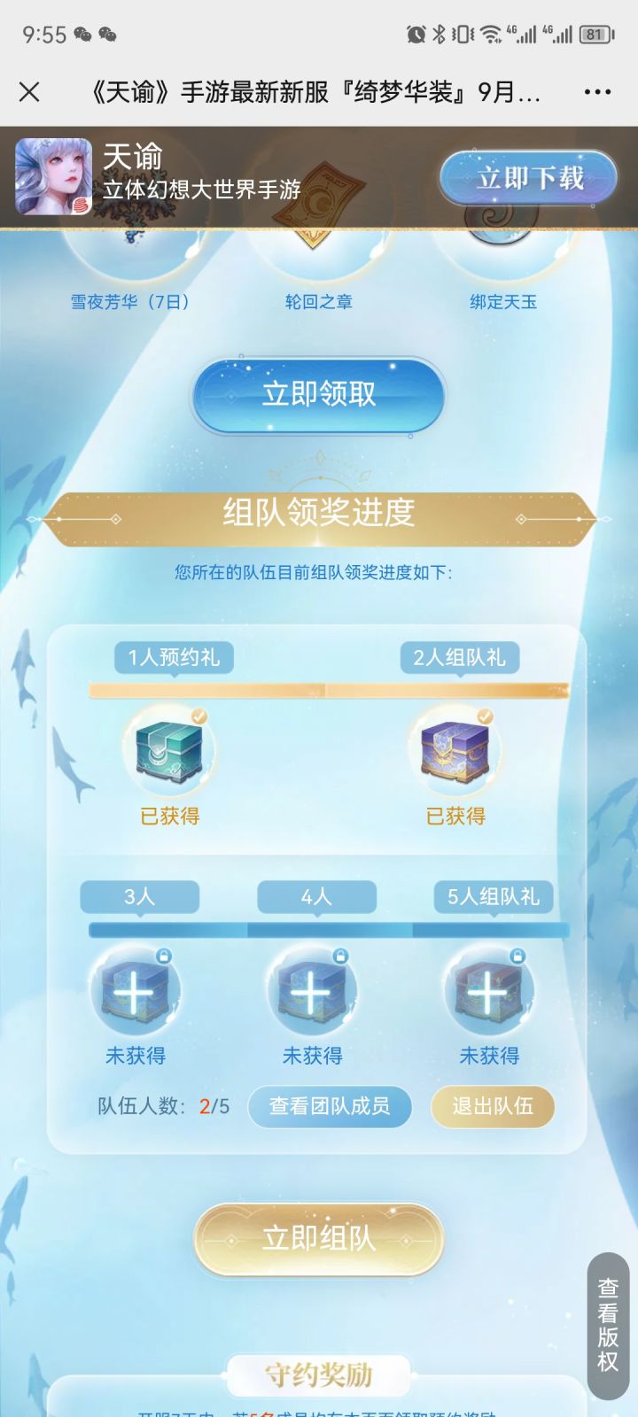 新服组队走起!福利多多!!!组队邀请码:ufGWVPuF网页https://tym.163.com/h5/20220209/rlrxf/iorsotxb/#/share?fromPhone=156****2692&inviteId=ufGWVPuF&channel=game
