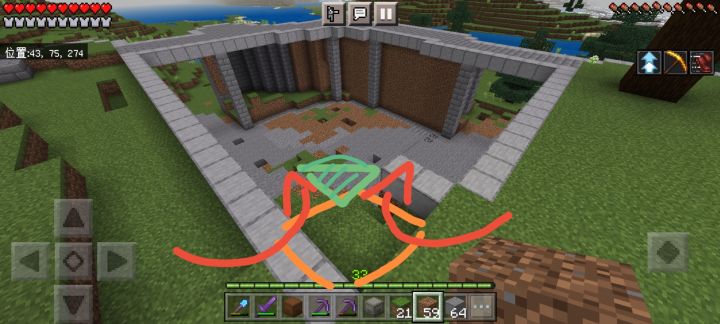 在一个露天地面上搭楼梯,原图是这样的(第一张)这三种方案哪种更好一点(箭头-楼梯;绿色-植物装饰;橙色-平台)楼梯宽4或3,一二层高差为8#游戏讨论#单机游戏