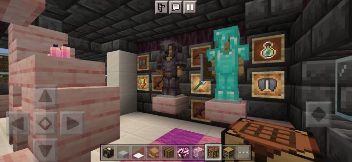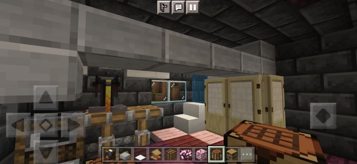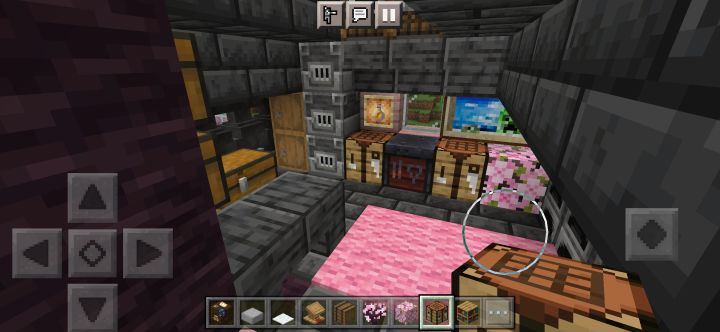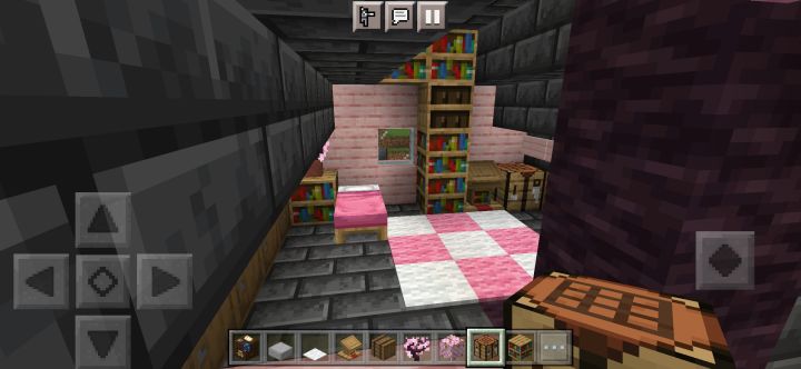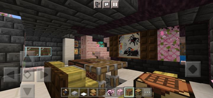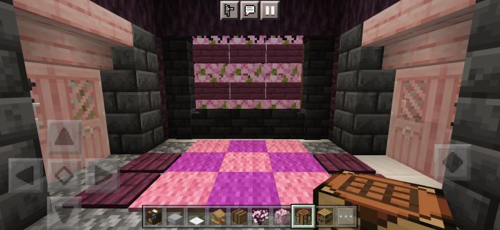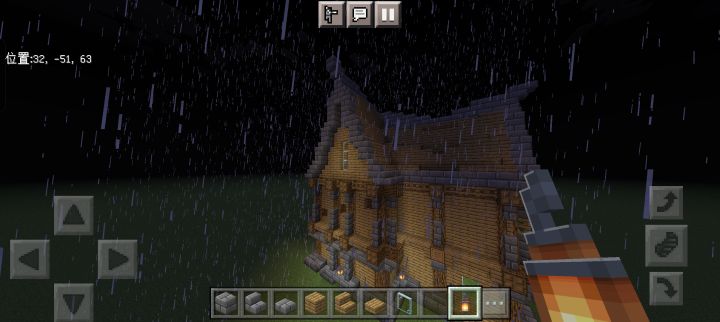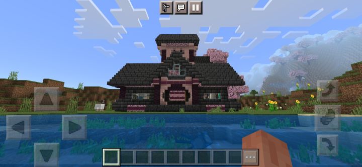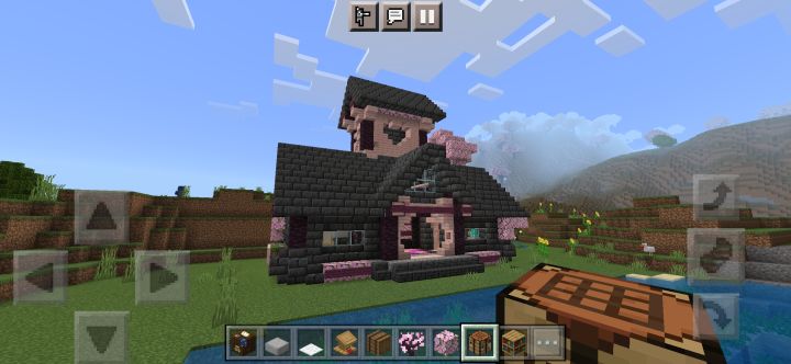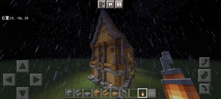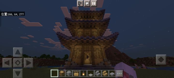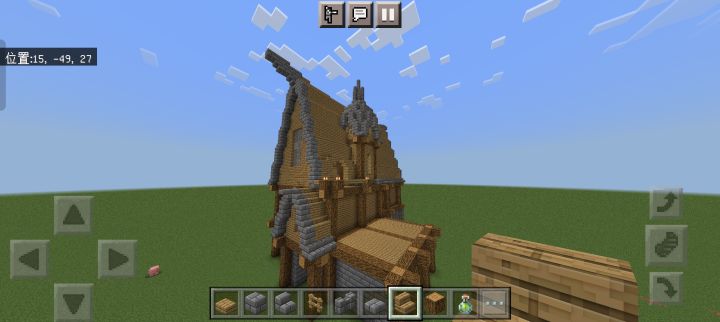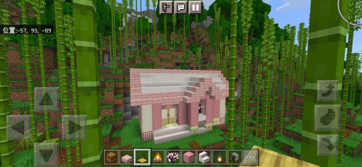 规模增大,本来想在樱花林里建的,但里面树太多懒得清理了,于是就在河边建了颜色搭配还是不行,建筑外有樱花树叶点缀,还藏了一些在屋檐下,所以可以看到樱花飘落首先是一个开放式大门(图3),然后分为左右两边小门,进左边是厨房(图4),右边是武器室(图5),再进去是客厅(图6),客厅旁有地下室入口(图7),再上楼又分两间,左边是工作室(图8),右边则是卧室(图9)另外有什么建议吗