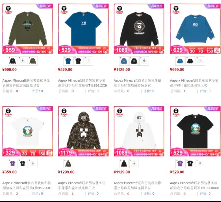 Minecraft x AAPE 联名款卫衣、T 恤现已上架