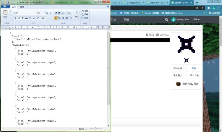 给暮色森林的立方护符写一个合成表看百科的话,湮灭立方的合成表是已经有的,立方护符这个材料它暂时没更新掉落护符的boss,生存搞不到我写的护符合成材料是所有种类的战利品,输出是立方护符看看能不能用